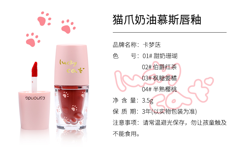 【第二支0元!拍2支19.9元】线下专柜有售卖,猫爪杯造型,萌得心都融化,抢kamonda猫爪唇釉!扁平刷头更容易勾勒唇形,轻柔雾感,哑而不干,持久锁色不易沾杯,4款人气色号任你选~【赠运费险】