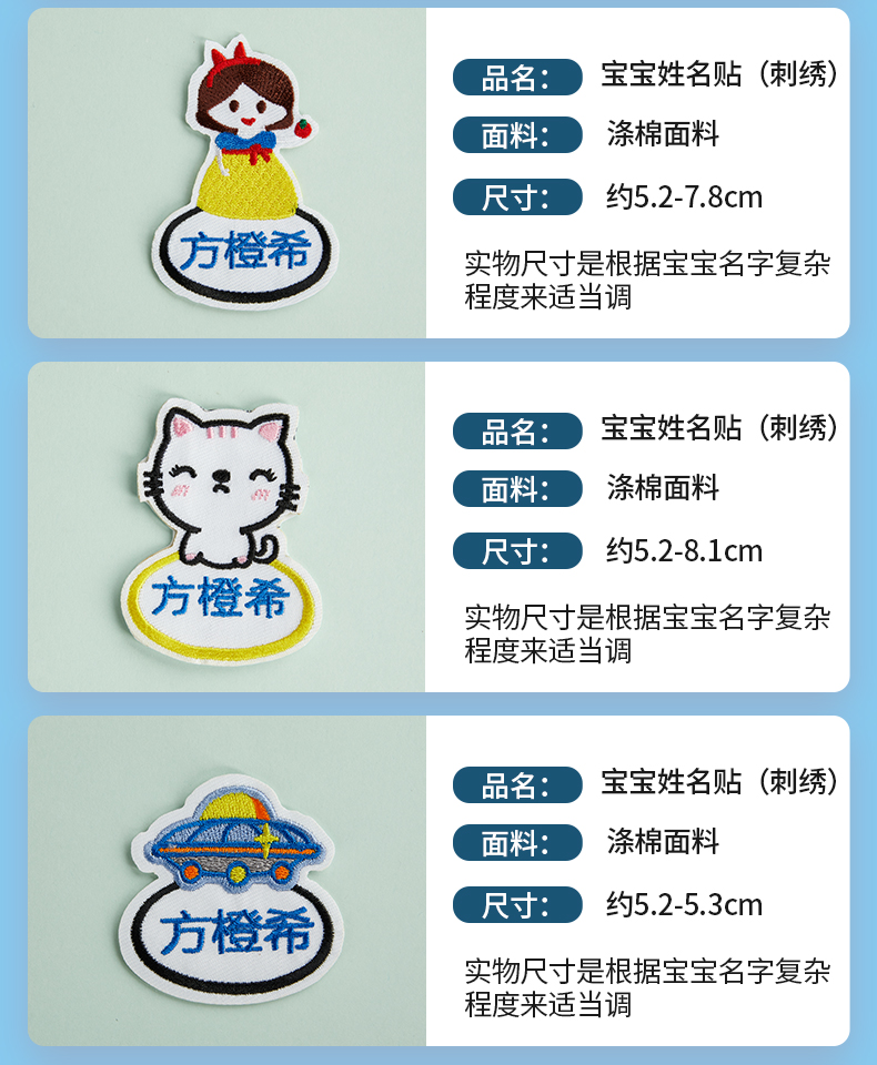 【52个装】姓名贴刺绣幼儿园宝宝名字贴