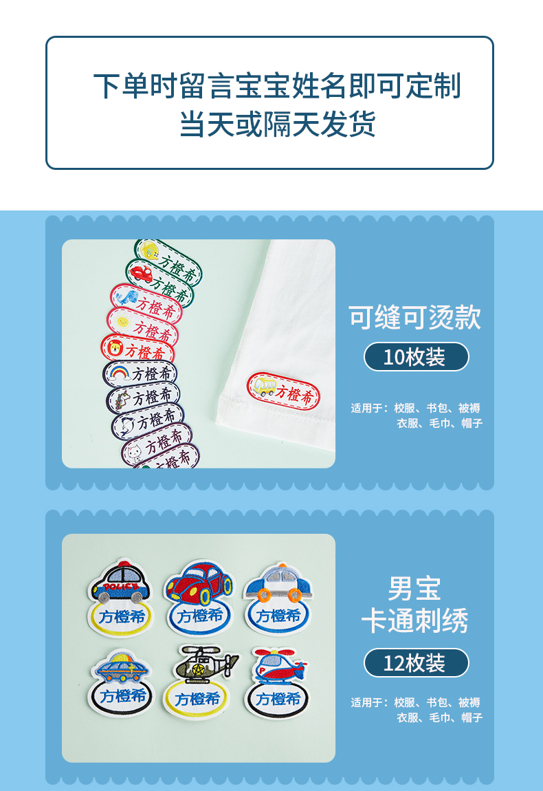 幼儿园名字贴免缝可烫印8秒速印,无感标签,不惧水洗,看得见的清晰,做工精致,轻柔无痕,拒绝刺痒的缝制线头,宝宝在学校再也不会拿错物品。