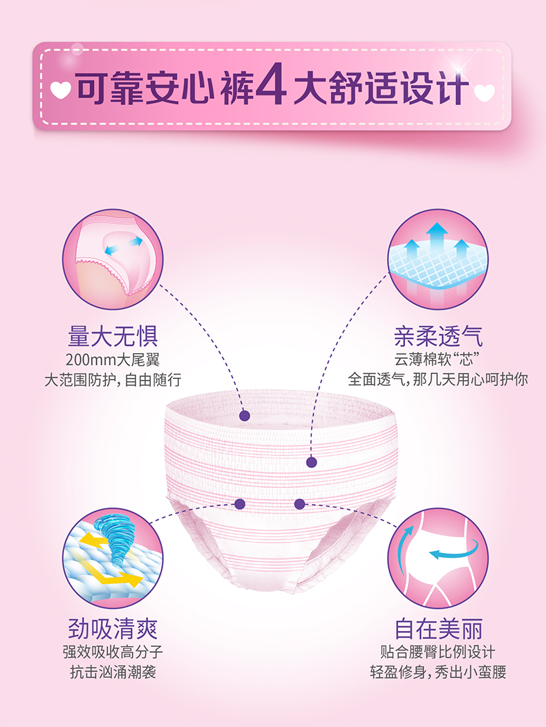 呵护女性,经期无忧,贴身防漏就像小内裤,柔软面层宠爱少女肌,轻薄透气裤裤会呼吸,好气色法宝,网红也种草,超长夜用不侧漏,睡觉更安心~【赠运费险】