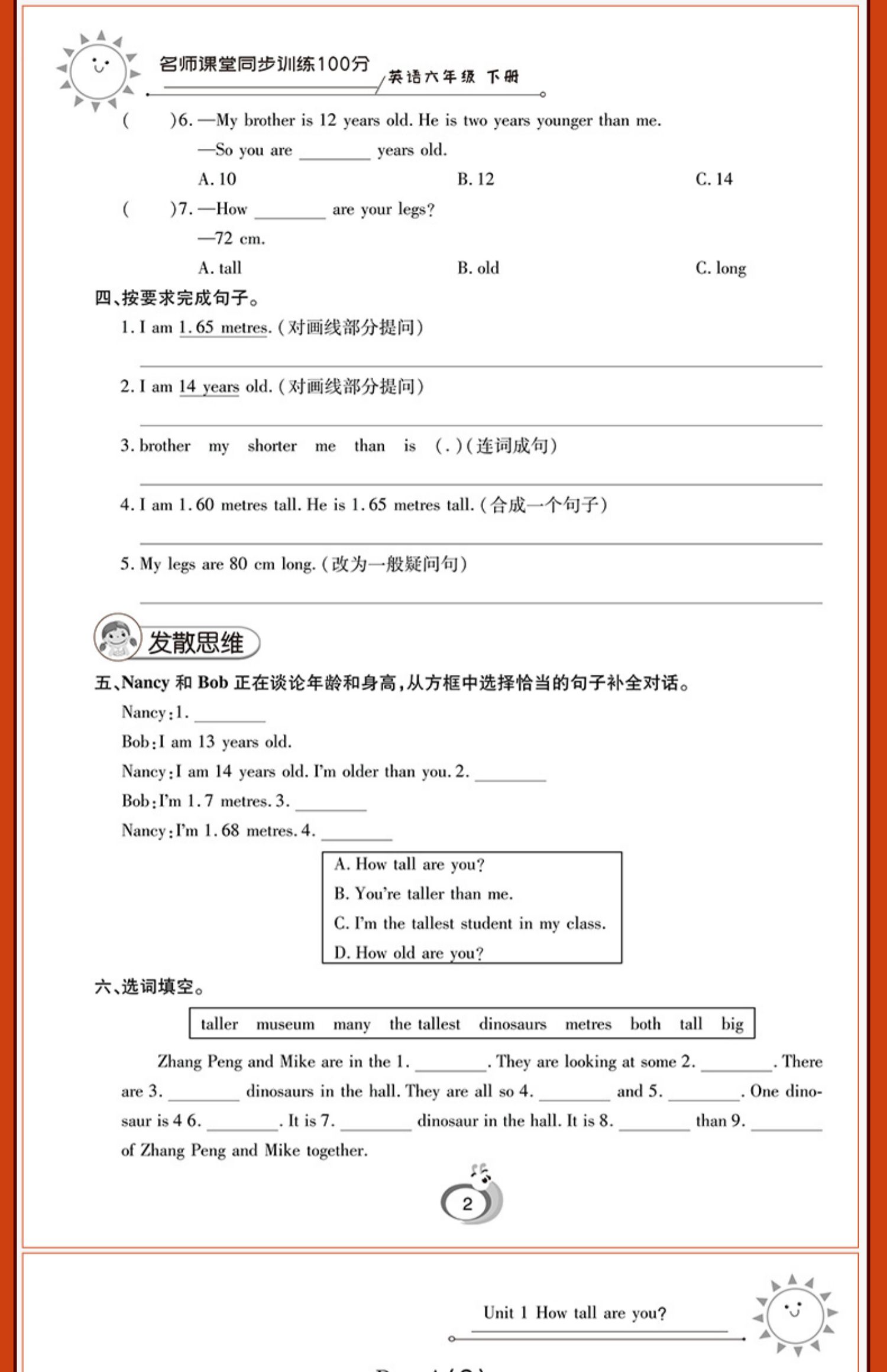 六年级下册同步练习册语文,数学全套部编人教版教辅资料,一课一练课时作业本天天练名师,课堂同步训练100分5年级下册试卷全套。