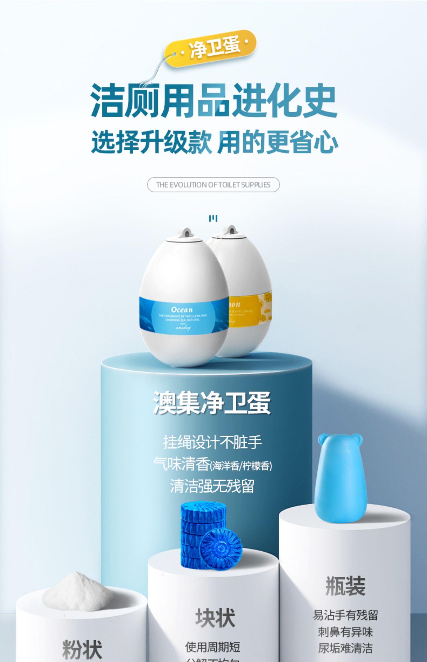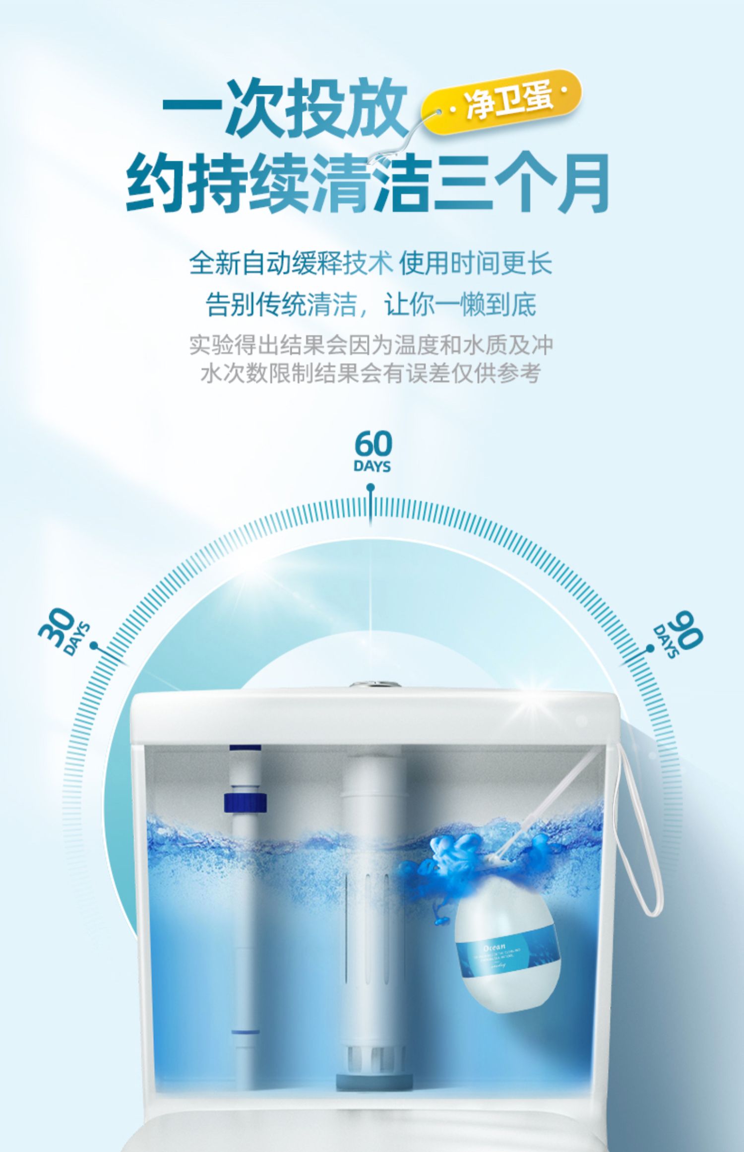 【升级款可用3个月】澳集马桶清洁净卫蛋,一瓶相当于40粒老款蓝泡泡,可以将近用三个月,强效去除尿渍污垢,还能预防细菌滋生,自带除臭的成分,平时出水顺便清洁马桶,用完还可以直接拎出来!