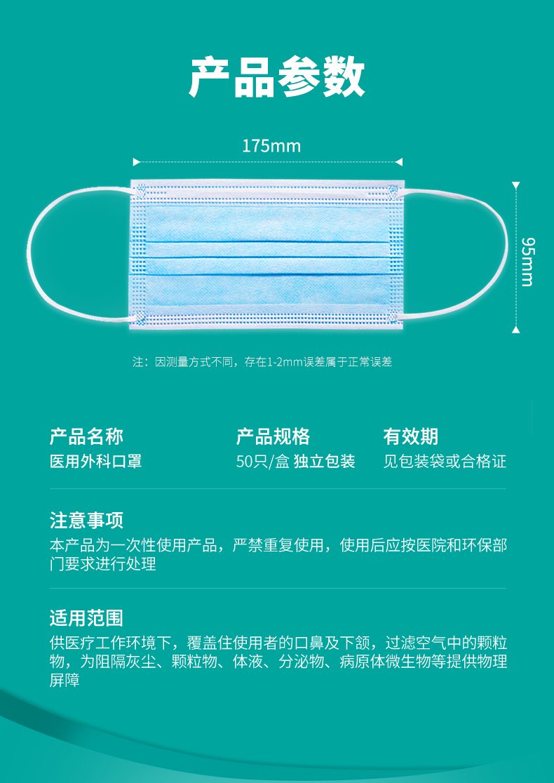 【前三千单7.9元】云南白药口罩医用外科独立包装50只,成人一次性医疗口罩,符合国家医用外科口罩行业标准,BFE细菌过滤大于95%,三层正规防护灭菌级防护更安全!