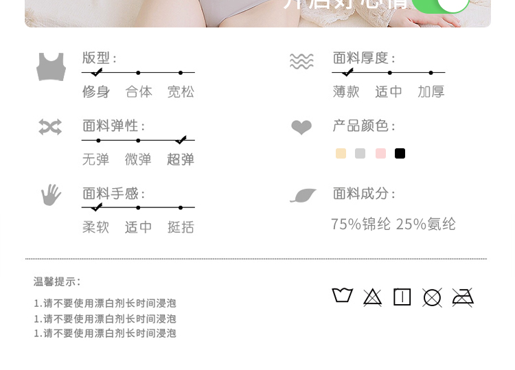 柔软亲肤,舒适透气,美背无痕,聚拢调整,丰满性感,立体塑胸,无钢圈设计,柔软任意卷曲,自由舒适