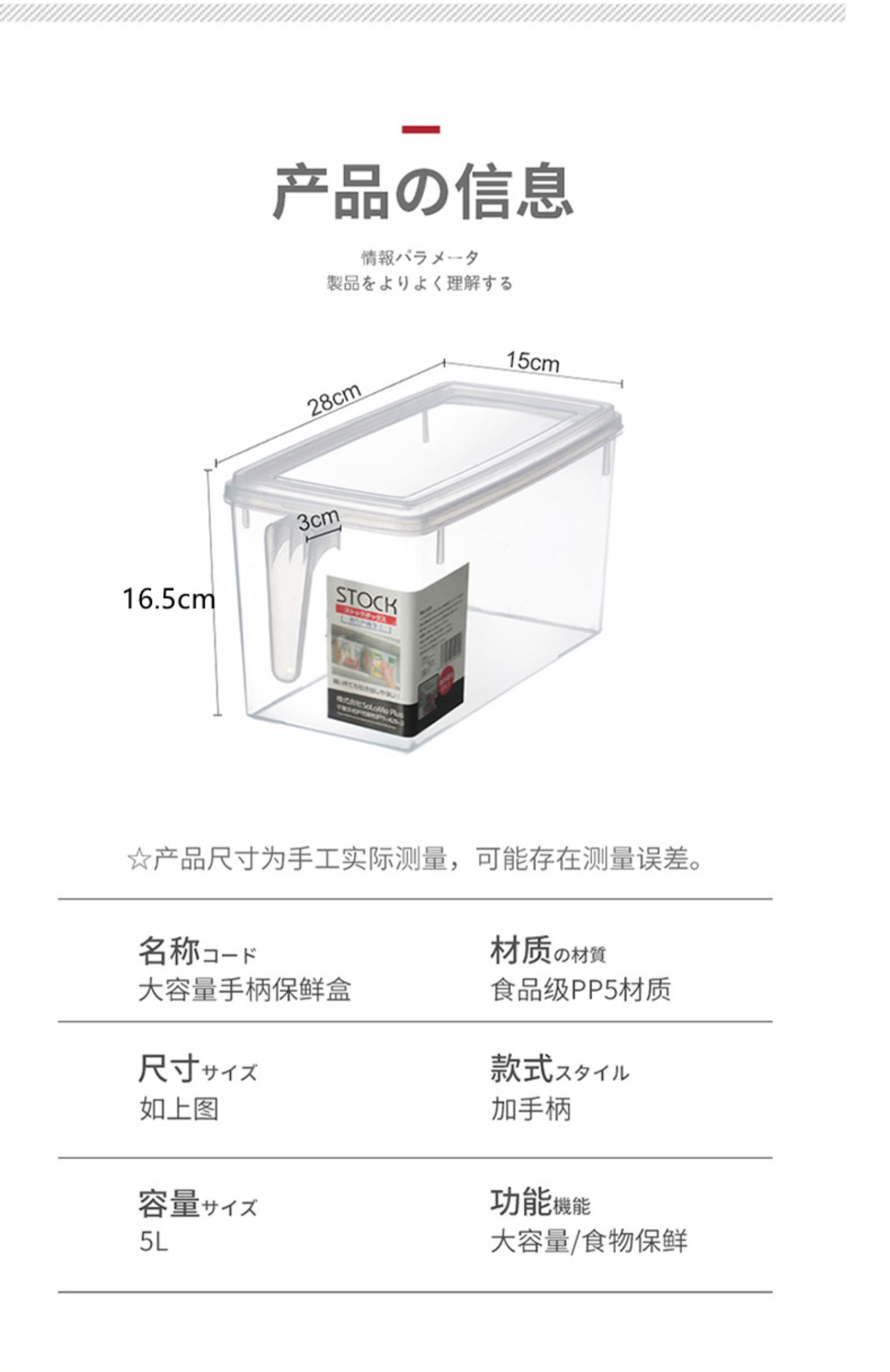 可冰箱收纳带盖保鲜盒5L