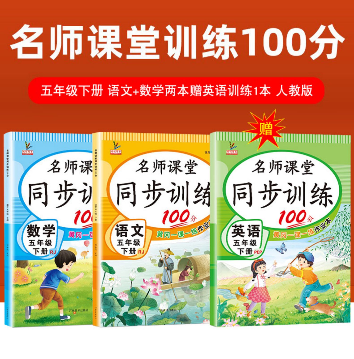 五年级下册同步练习册语文,数学全套部编人教版教辅资料,一课一练课时作业本天天练名师,课堂同步训练100分5年级下册试卷全套。