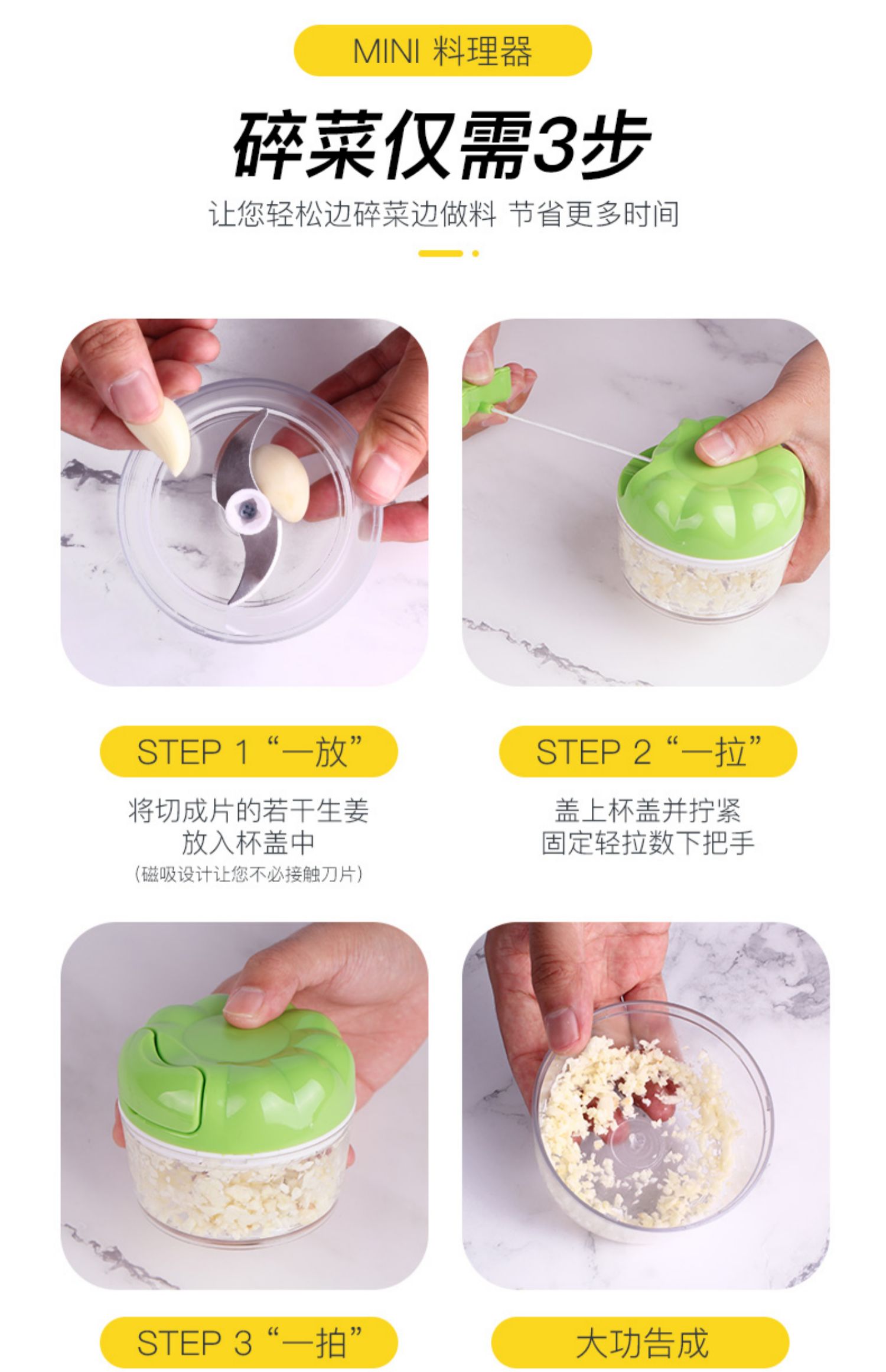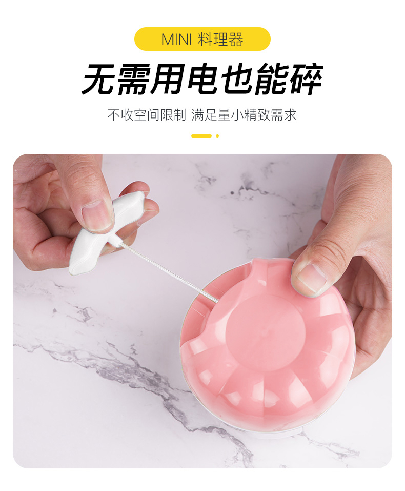厨房必备神器,绞蒜,切菜,磨碎食都好用,还可以给给宝宝做辅食!操作简单,拉几下就可以,清洗也方便~,优质材质,健康环保,方便实用,操作简单,省时省力~也可以为宝宝准备辅食哦。【赠运费险】