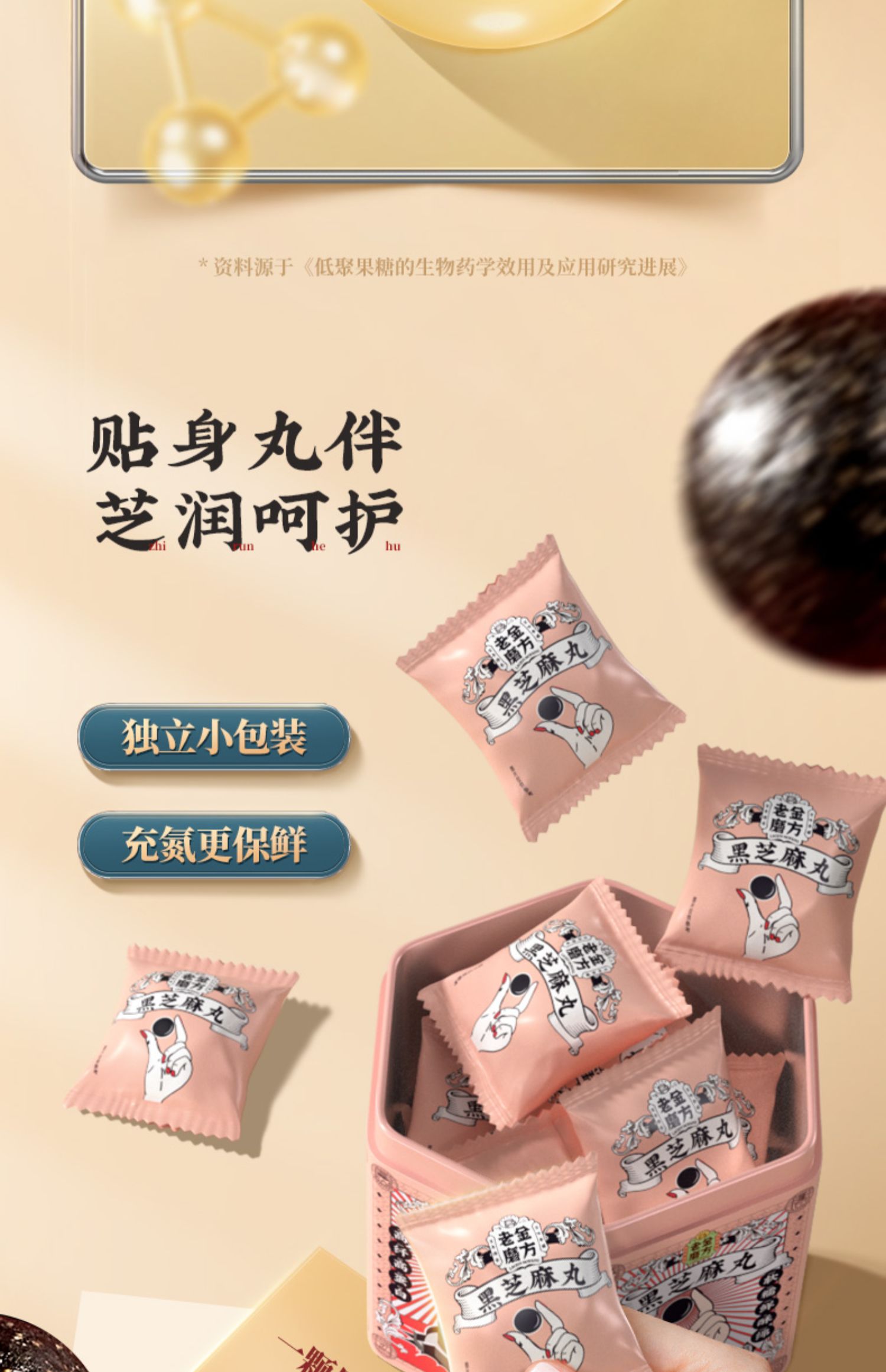 老金磨方黑芝麻丸,养发零食,老金磨坊旗舰店正品芝麻丸子芝麻球