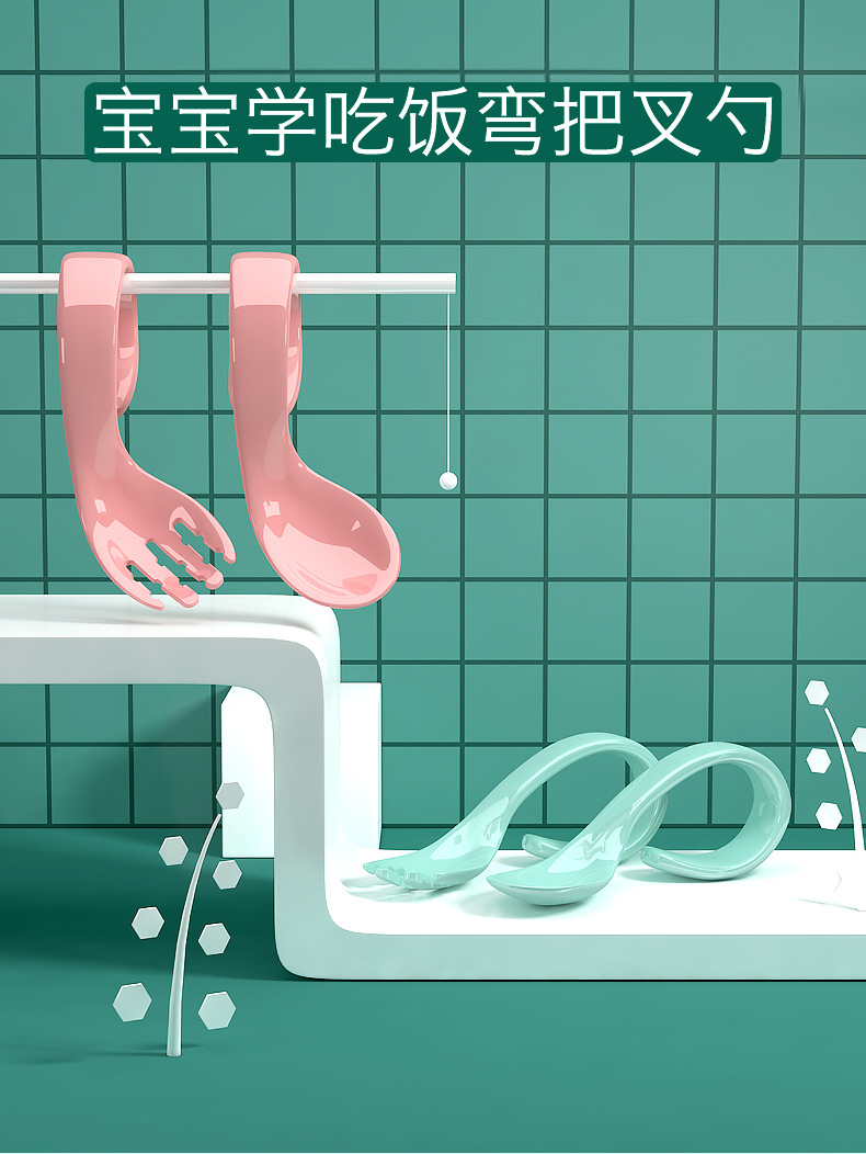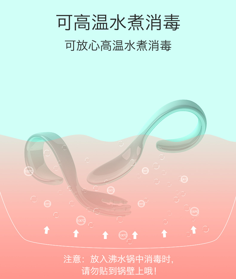 宝宝学吃饭弯把叉勺,可高温水煮消毒,一体成型易清洗,人体工学弯把手柄,满足宝宝进食姿势,细致打磨无毛边,妈妈更安心!