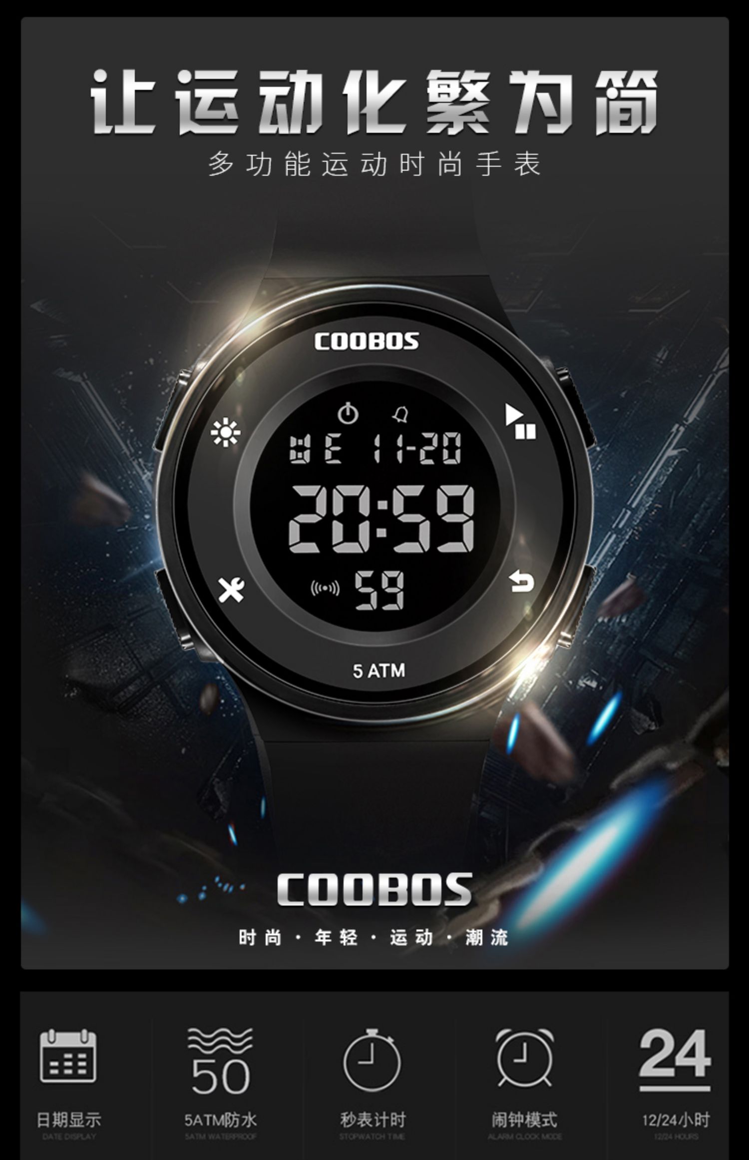 【稳定签到】coobos多功能防水防摔电子手表