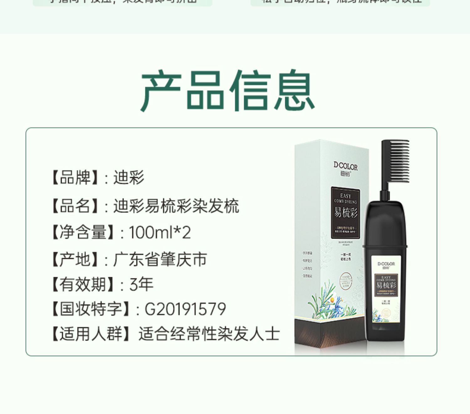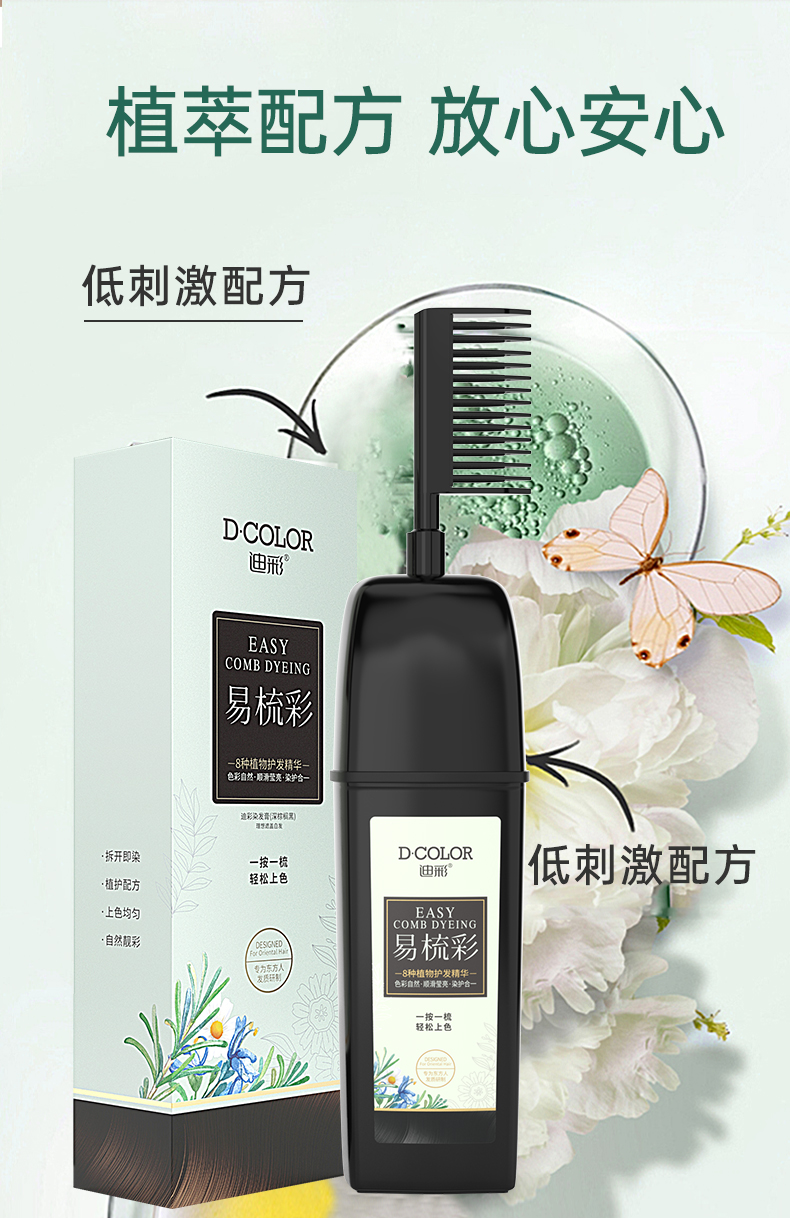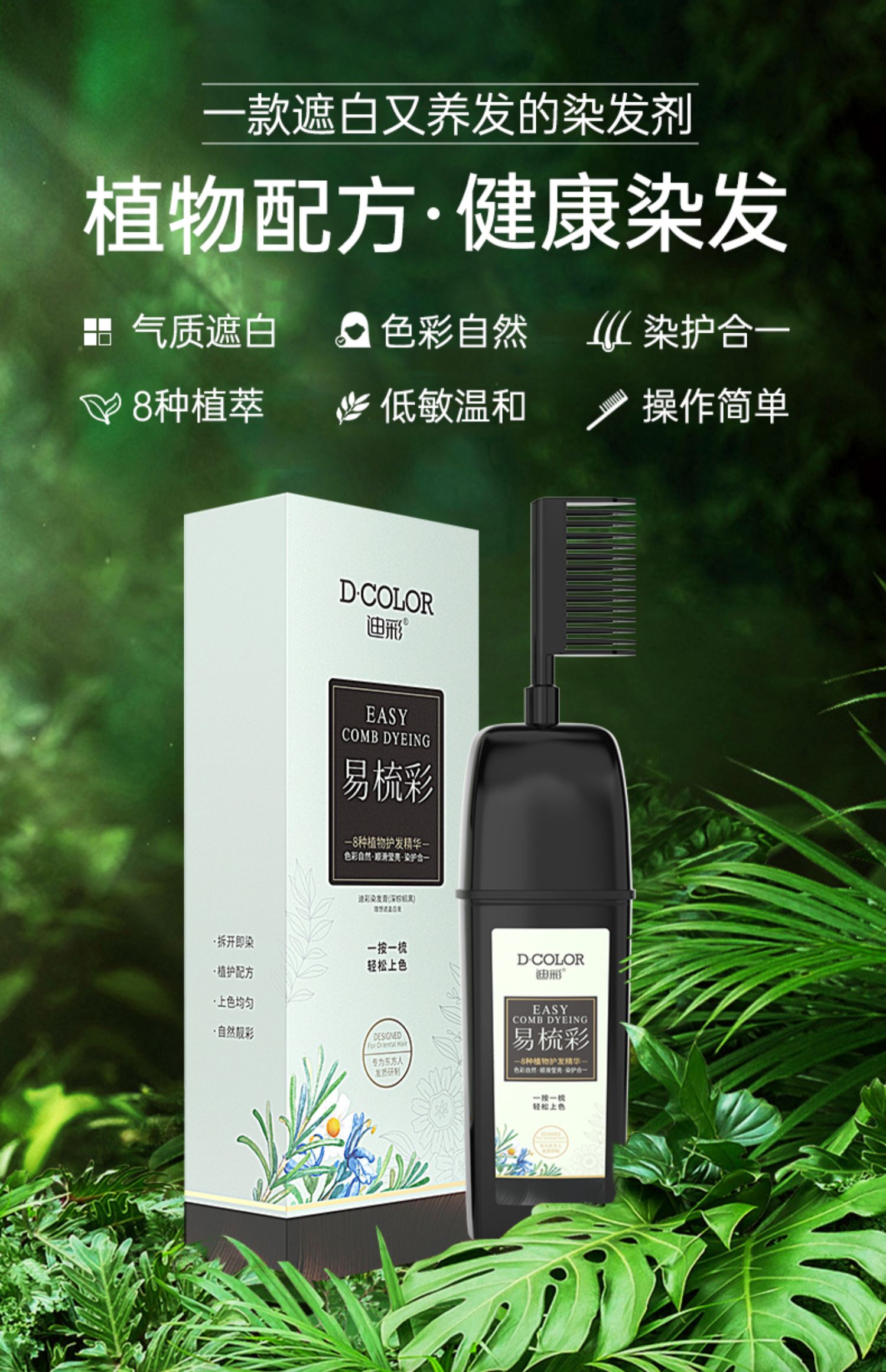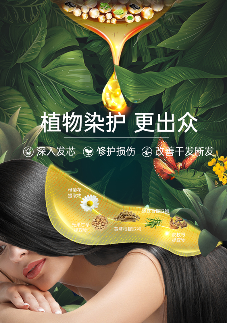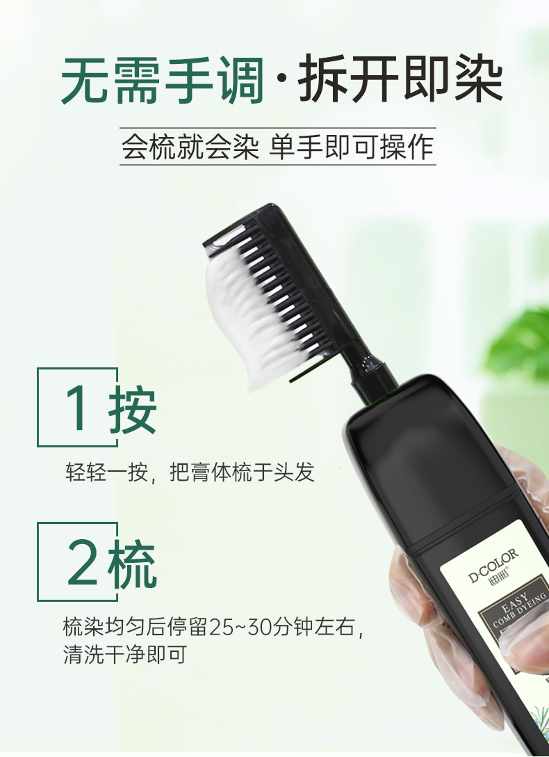 染发+焗油+护发,三效合一,植物养护配方,健康染发,改善多种染烫损伤发质。温和膏体,气味芳香怡人,持久固色,只黑头发,不黑头皮~