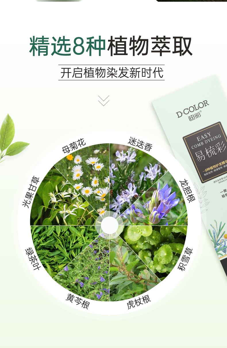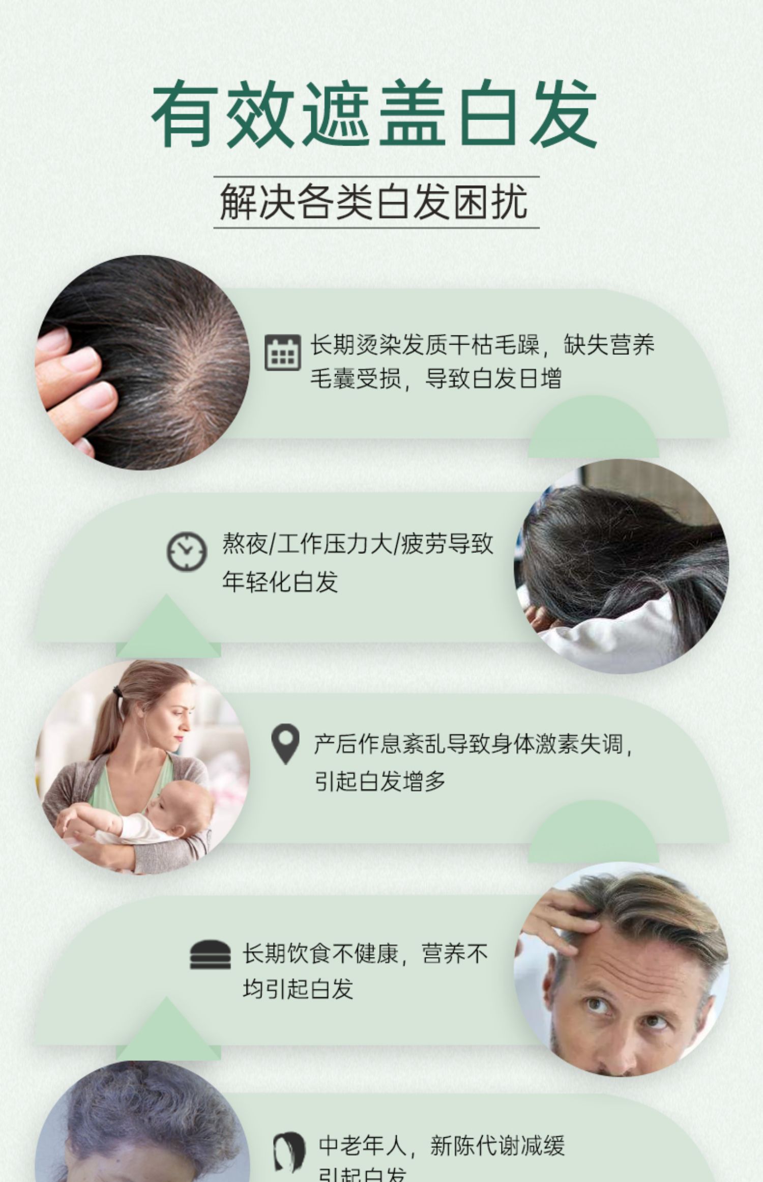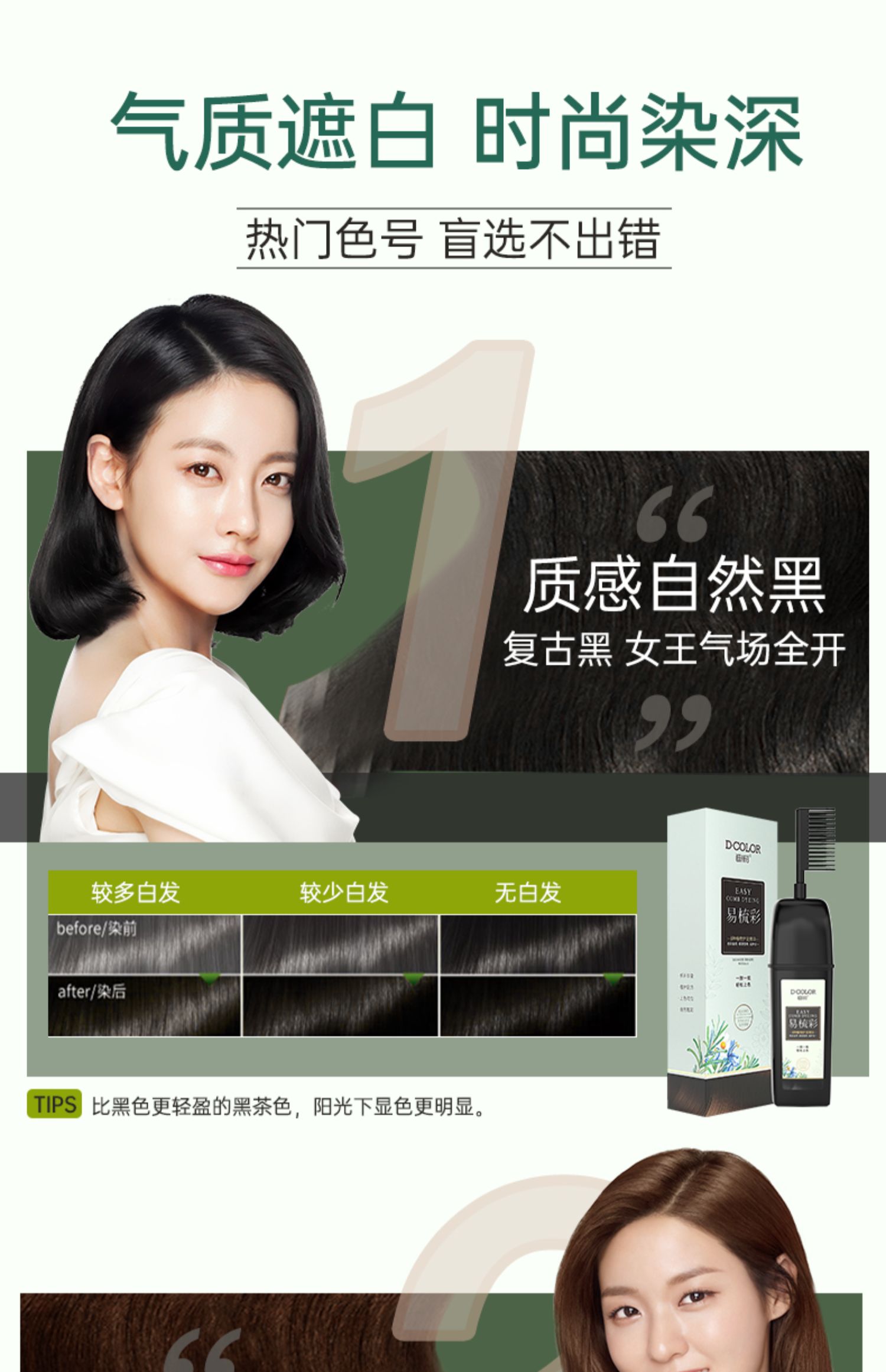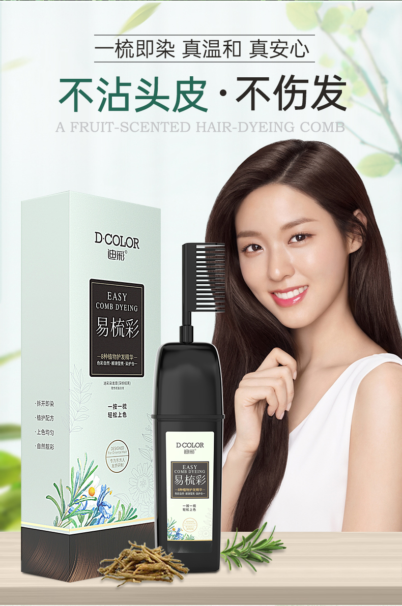 染发+焗油+护发,三效合一,植物养护配方,健康染发,改善多种染烫损伤发质。温和膏体,气味芳香怡人,持久固色,只黑头发,不黑头皮~