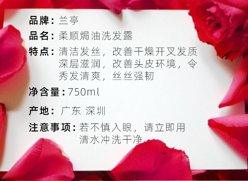 兰亭玫瑰焗油,区别于普通洗发水,添加焗油精油,洁净头皮的同时滋养秀发,洗完头发后会留香的,从根源解决头发毛燥问题,还你滋润秀发!