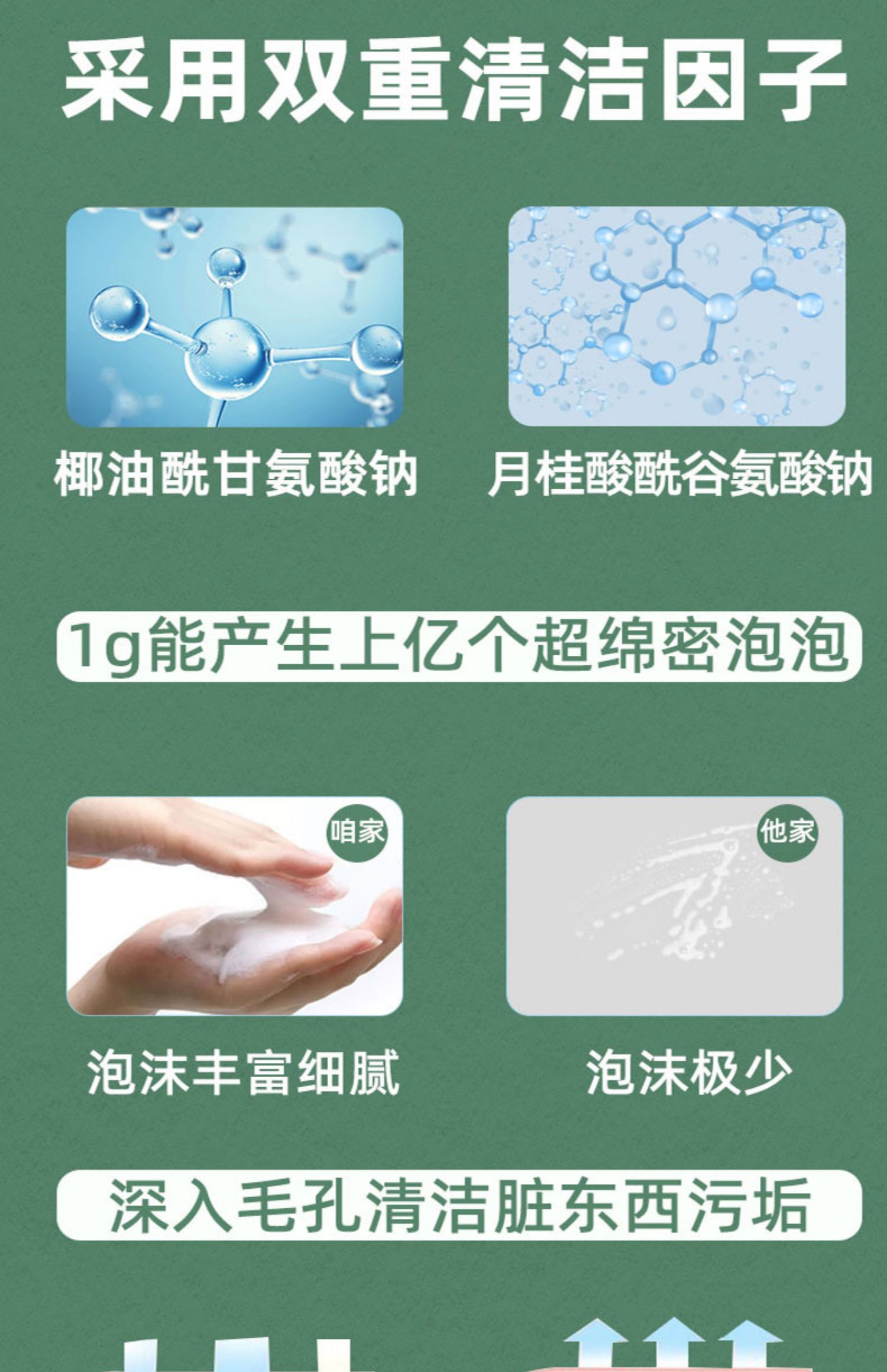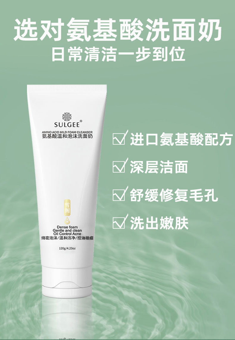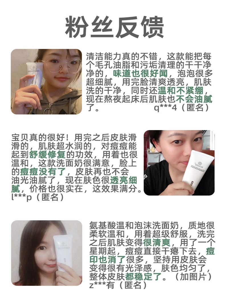 氨基酸温和洁面乳,清洁收缩毛孔,祛黑头,祛粉刺,祛痘去印,温和控油,洗出幼嫩婴儿肌!