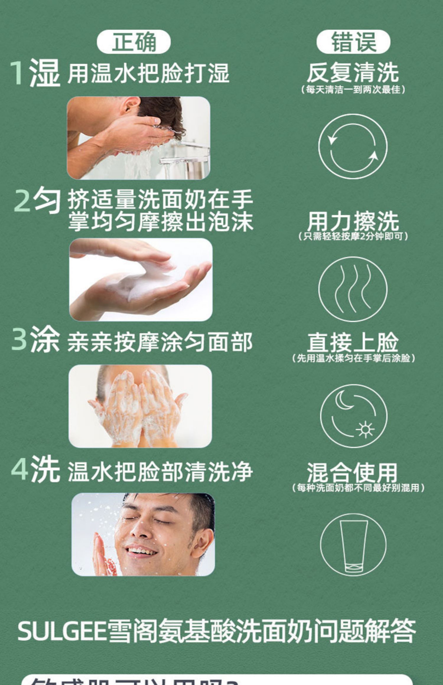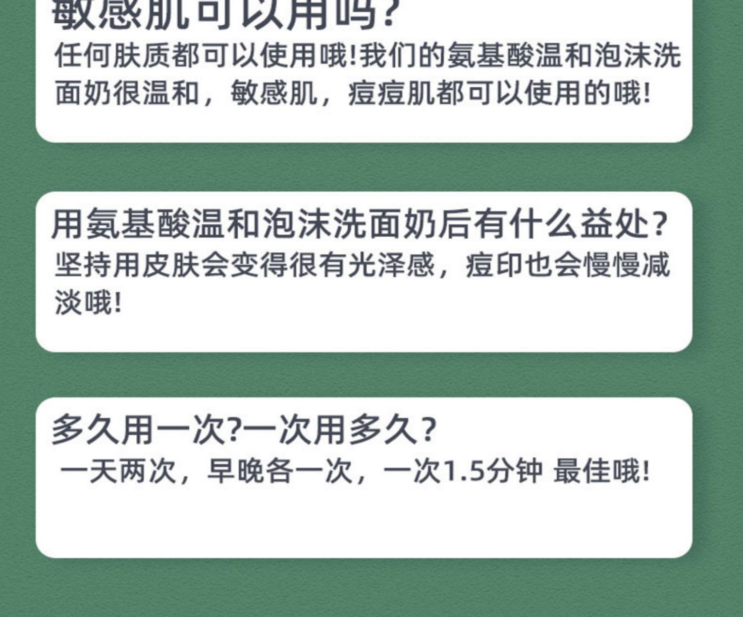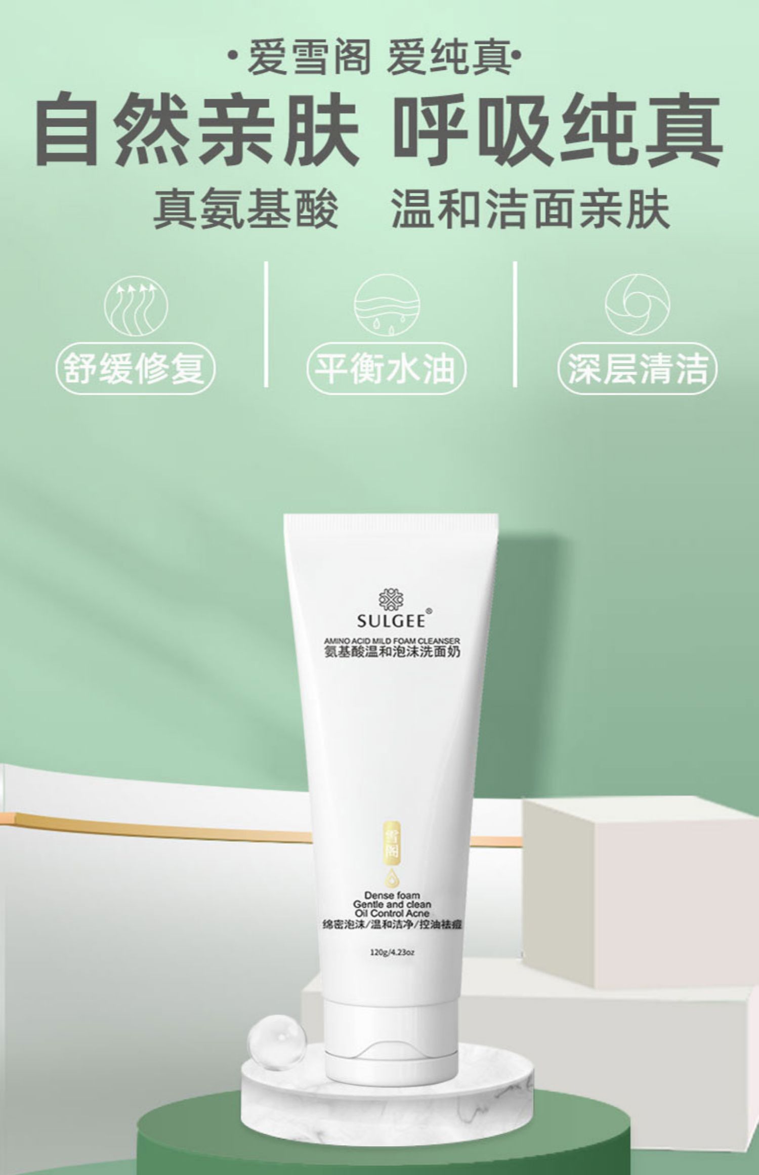 氨基酸温和洁面乳,清洁收缩毛孔,祛黑头,祛粉刺,祛痘去印,温和控油,洗出幼嫩婴儿肌!