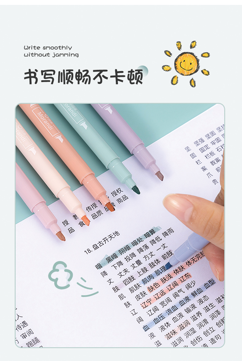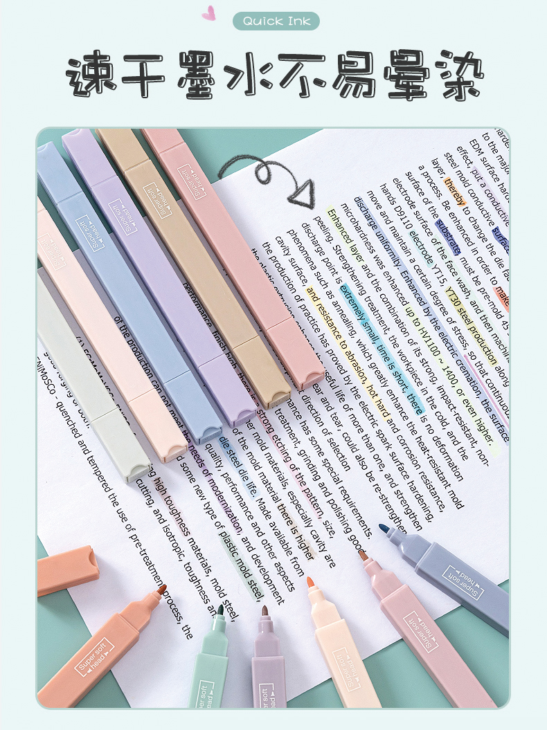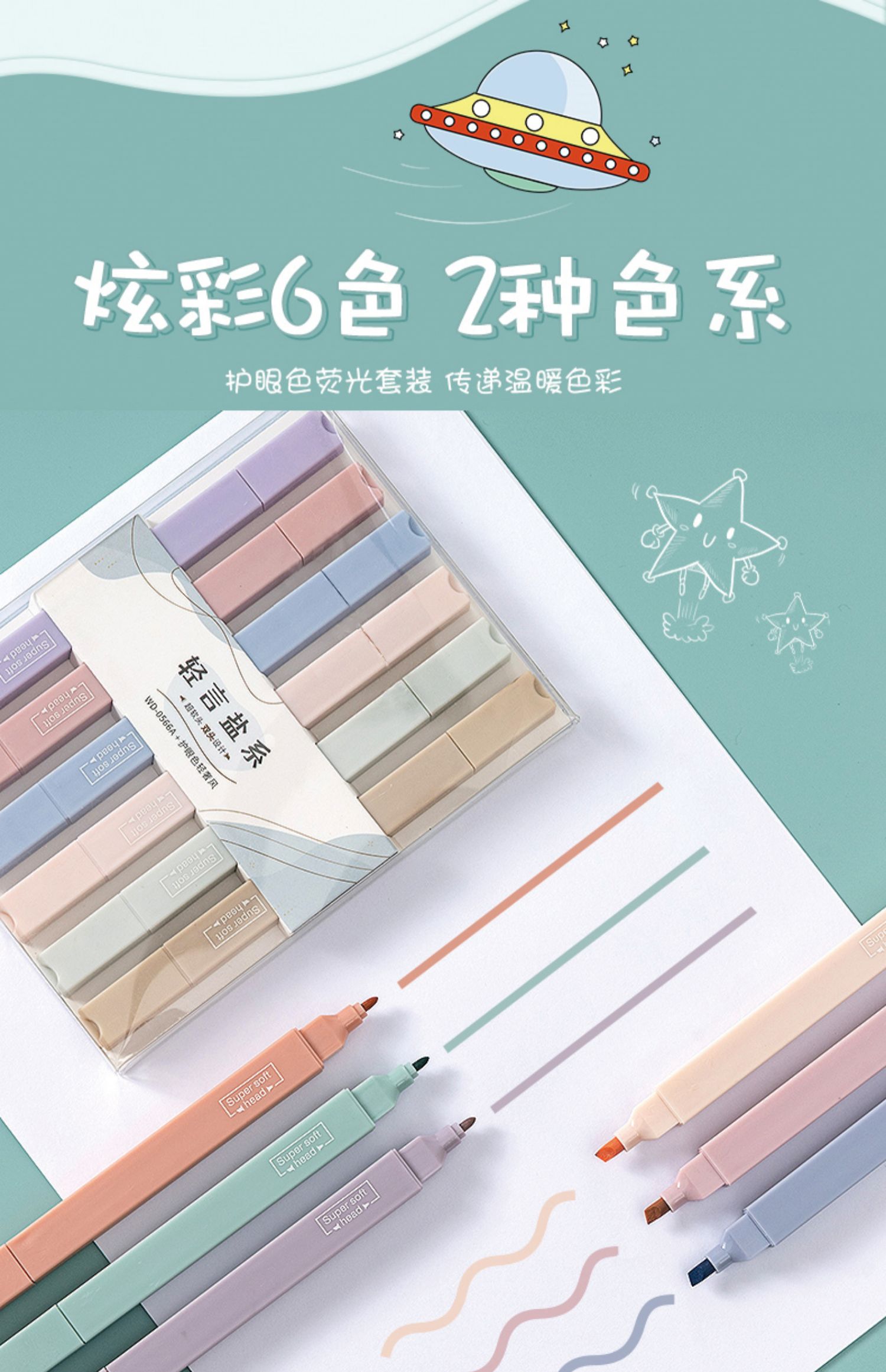 【3支6色】护眼色荧光笔,色彩柔和不伤眼,出墨均匀,书写流畅,纤维耐磨软头,柔软舒适,可以用来标记重点,区分不同,多种色系可选~