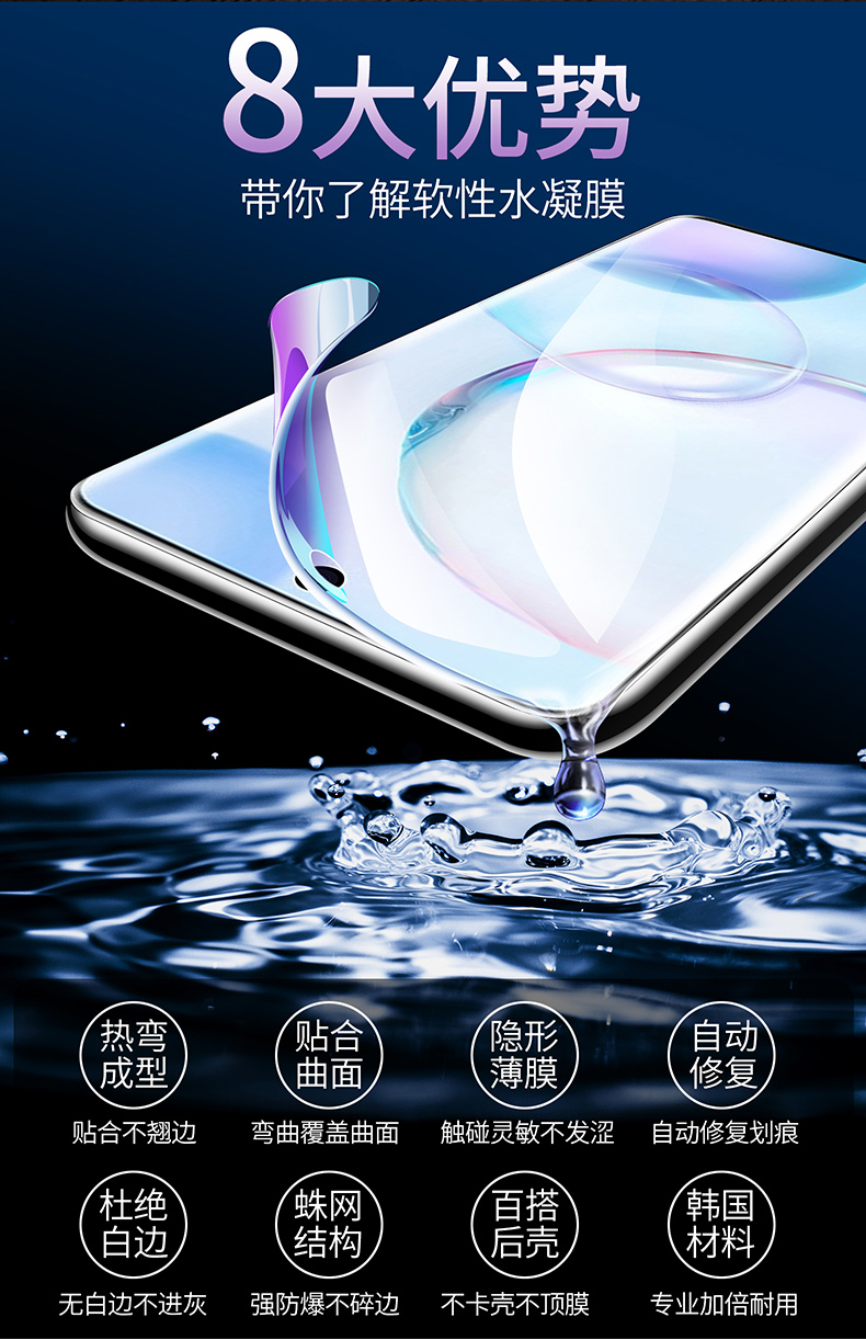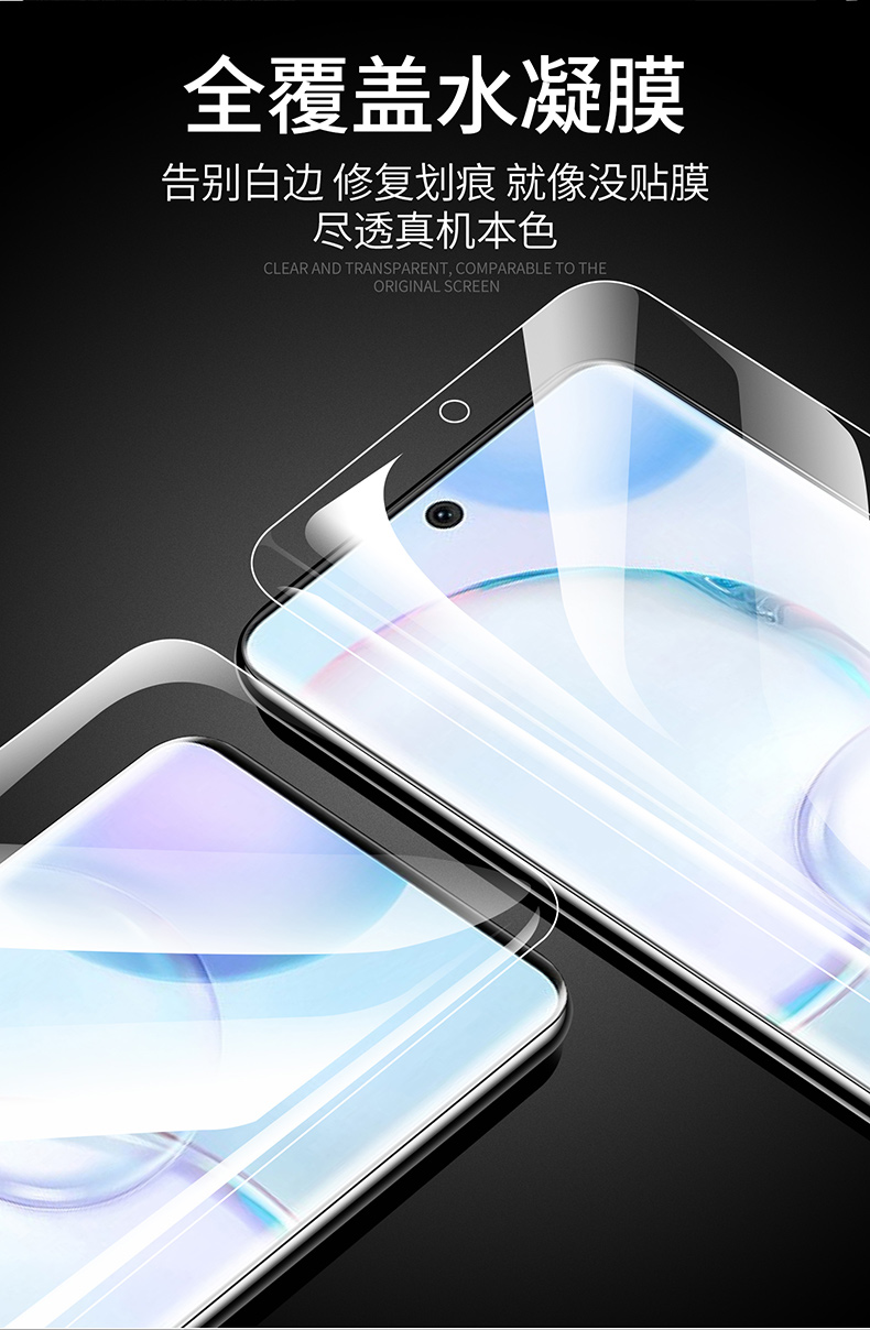 送镜头膜+后膜+贴膜神器,华为荣耀50系列钢化水凝膜,新一代柔性水凝膜,护眼更到位,触感灵敏,颠覆传统无白边,超薄软膜,祼机手感,全屏贴合不翘边,自动修复划痕,高清防摔防爆,强抗指纹,好手机就用好膜~
