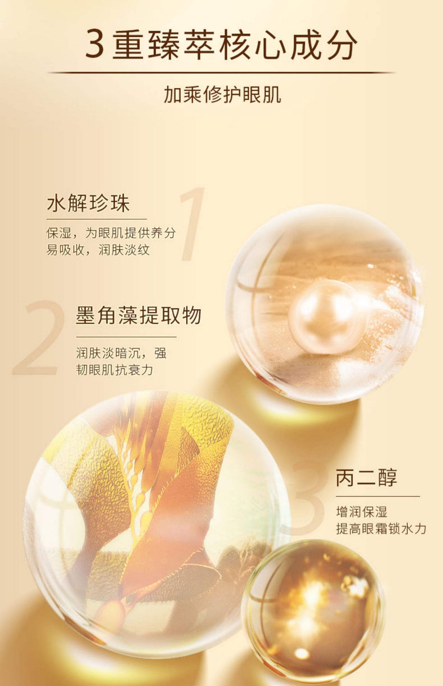 淡化眼周细纹、改善黑眼圈,焕亮眼周肤色,紧致提拉,补水保湿。黑眼圈克星!熬夜党福音!
