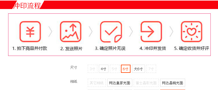 淘金币抵扣后4.76元*34张!拍3寸+高清+乐凯金圣绒面!优质相纸,防水防污,超高清印刷,100年不褪色!各种电子手机照片都可,