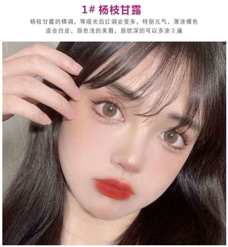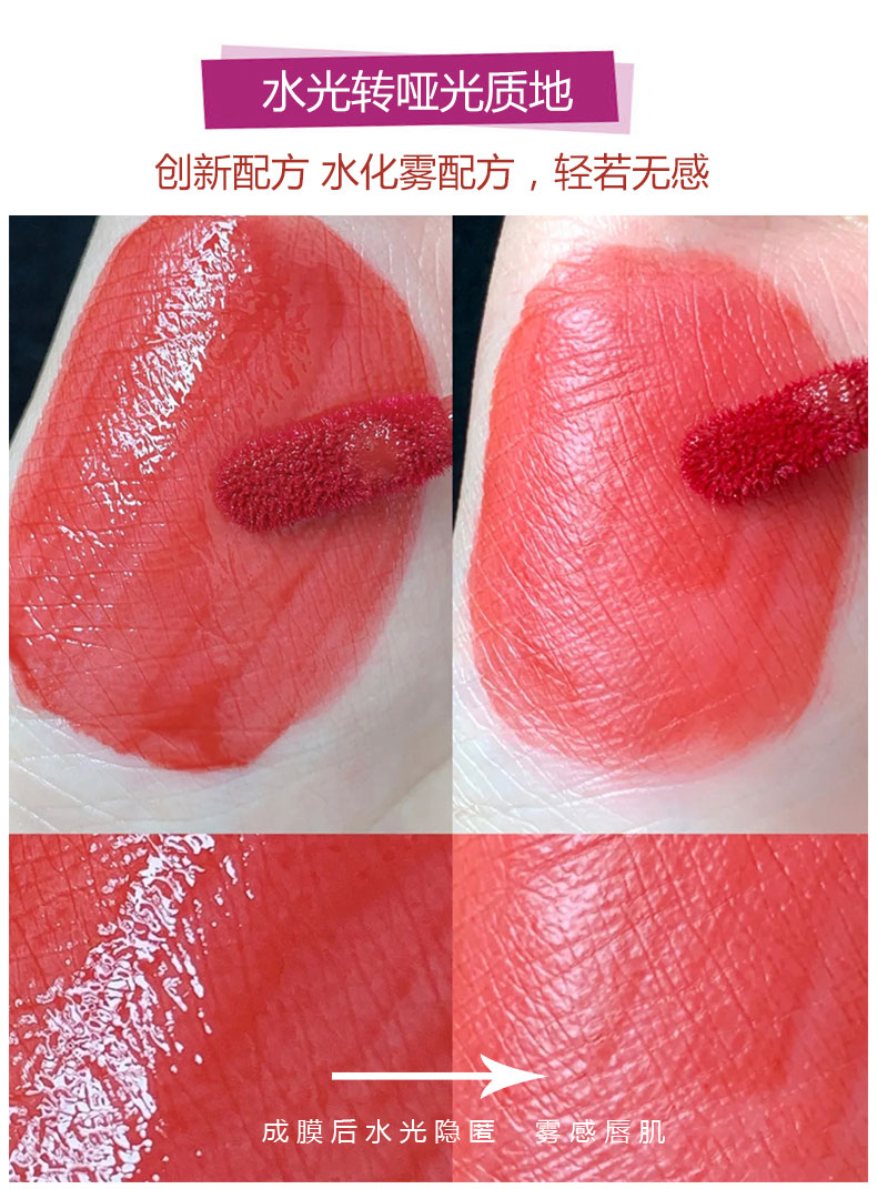 【完美日记女孩同款】创新水感转雾面配方,一抹即化,变幻两种质地,里润外哑,清爽体验,不易沾杯,持久锁色,扁平刷头易勾勒唇形,多种颜色,总有一款适合你!