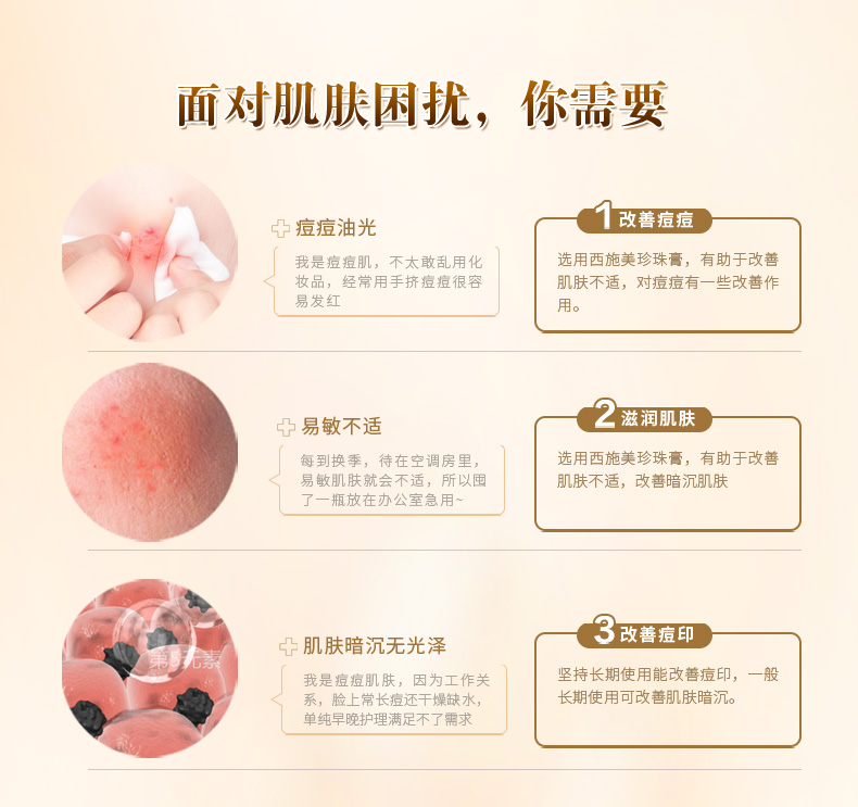 深入肌肤底层补充营养和水分,持久保湿,富含有珍珠粉,内修护亮颜,外均肤。让皮肤更净白。