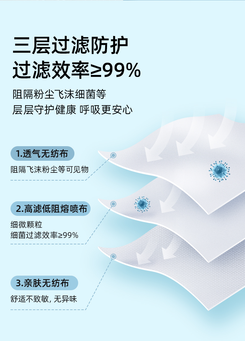 洁丽姿防护口罩,3d立体贴合防护,高弹性,舒适不勒耳,三层过滤,水驻级熔喷布,高滤低阻更透气,呼吸更安全【赠运费险】