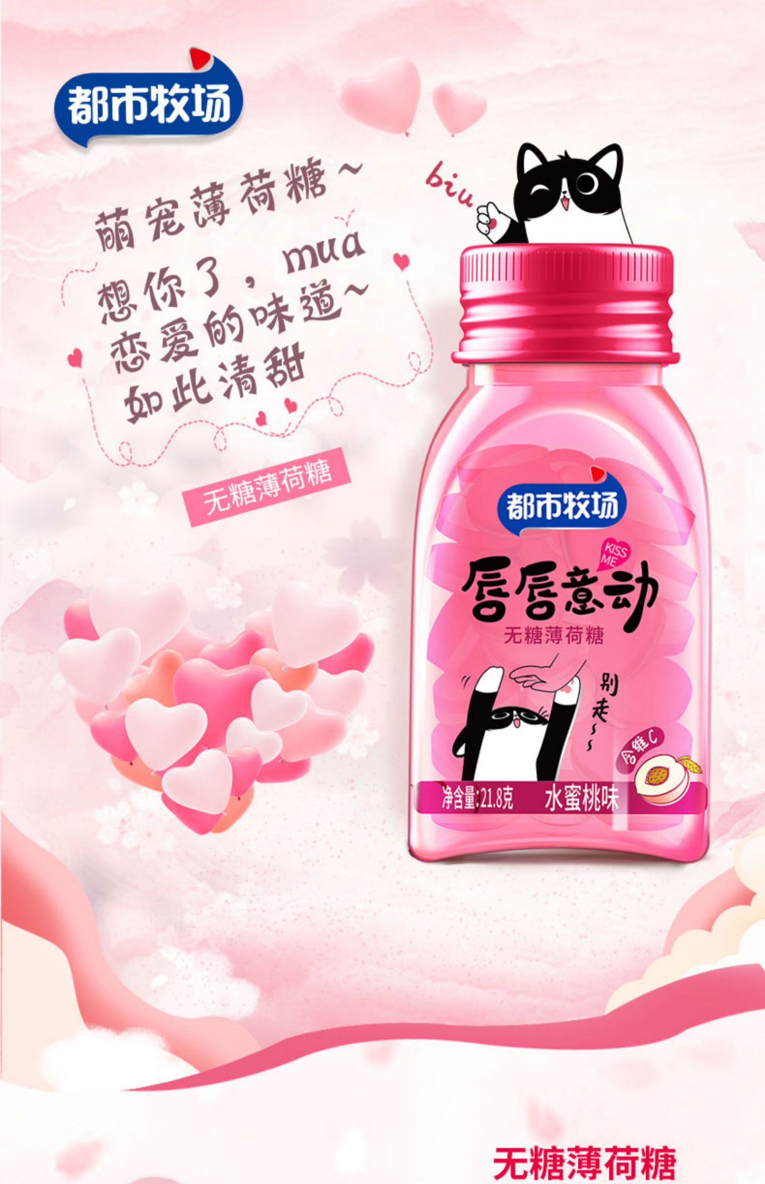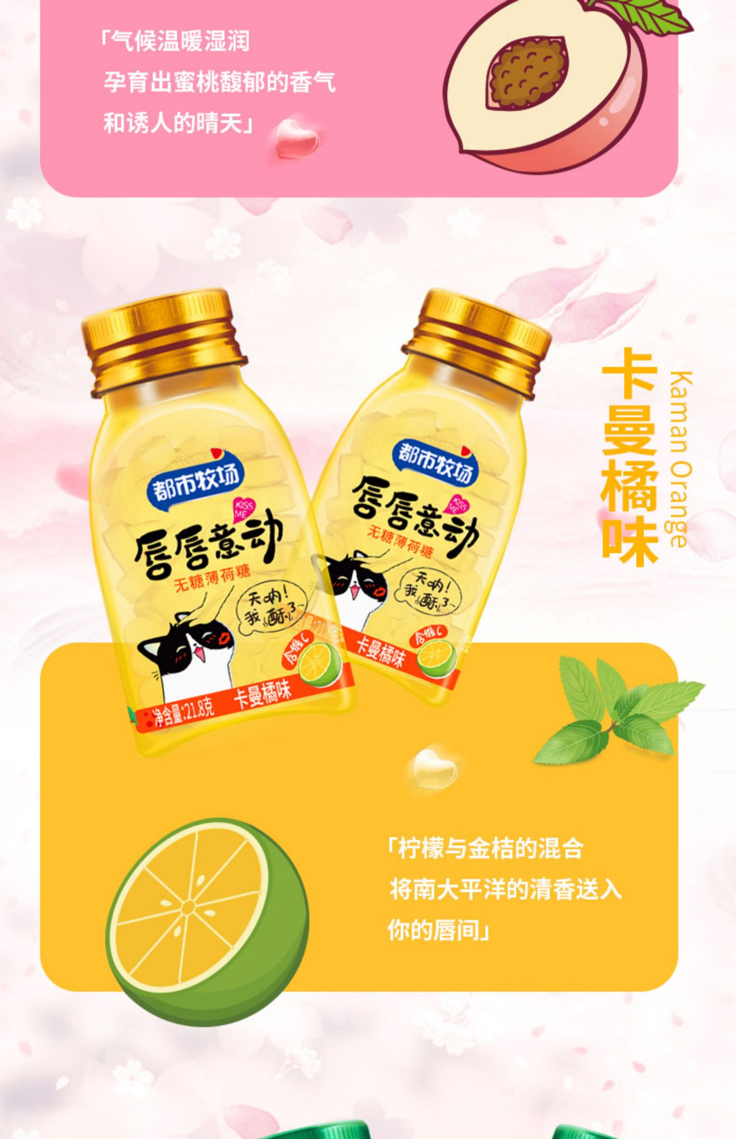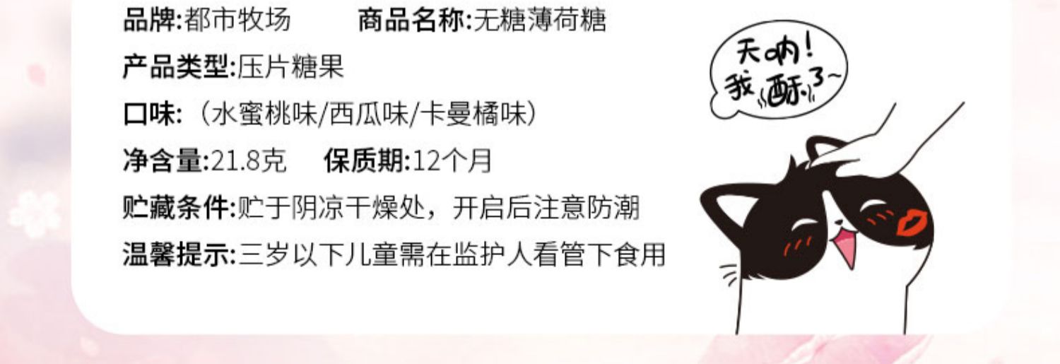 【6瓶装】都市牧场不一样的薄荷糖,多种水果口味,清新口气,无糖配方不伤牙齿!富含维生素,无糖低卡,爽爆味蕾~清新口气,应酬约会更自信!