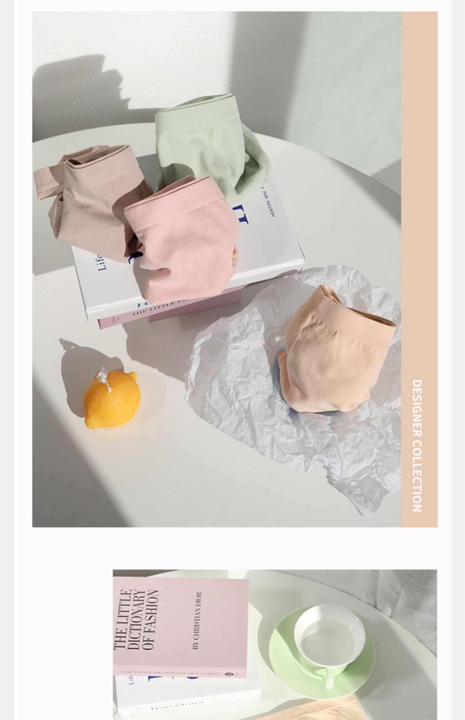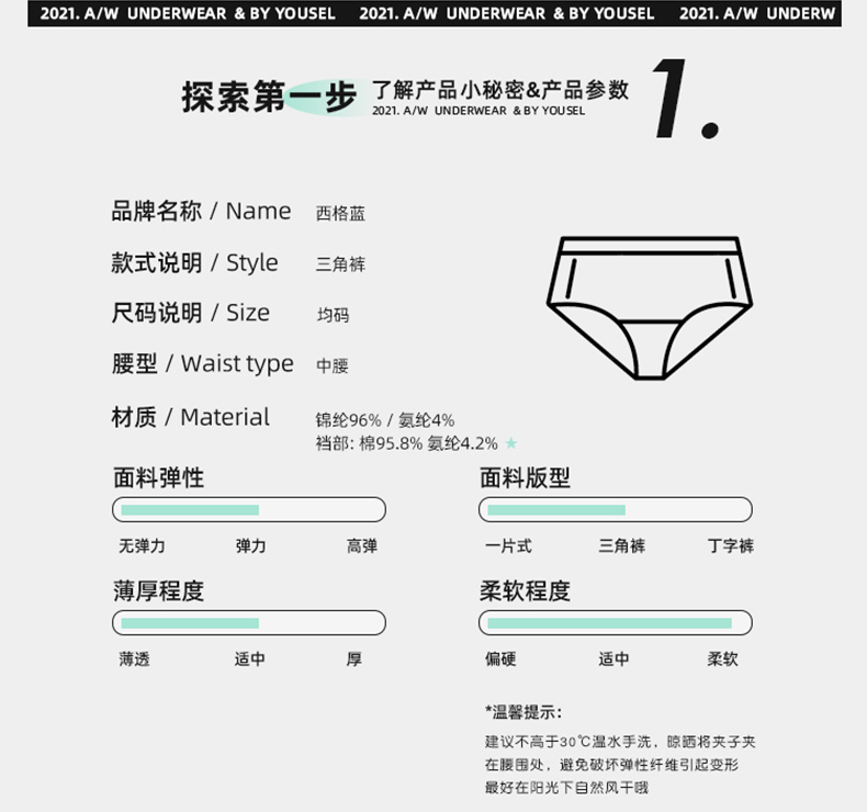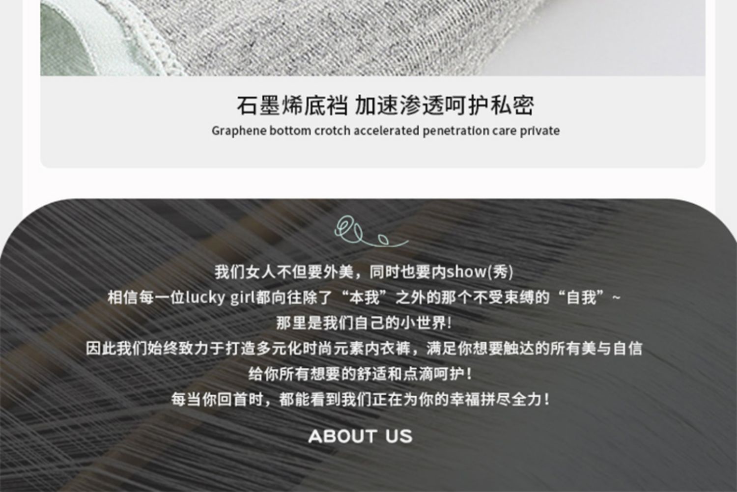 舒适无痕裸氨面料,透气性强,石墨烯纯棉底档,抗菌更安全,甜美纯色系列,弹性大,上身舒适不夹pp,隐形无痕设计,温柔呵护女性健康!