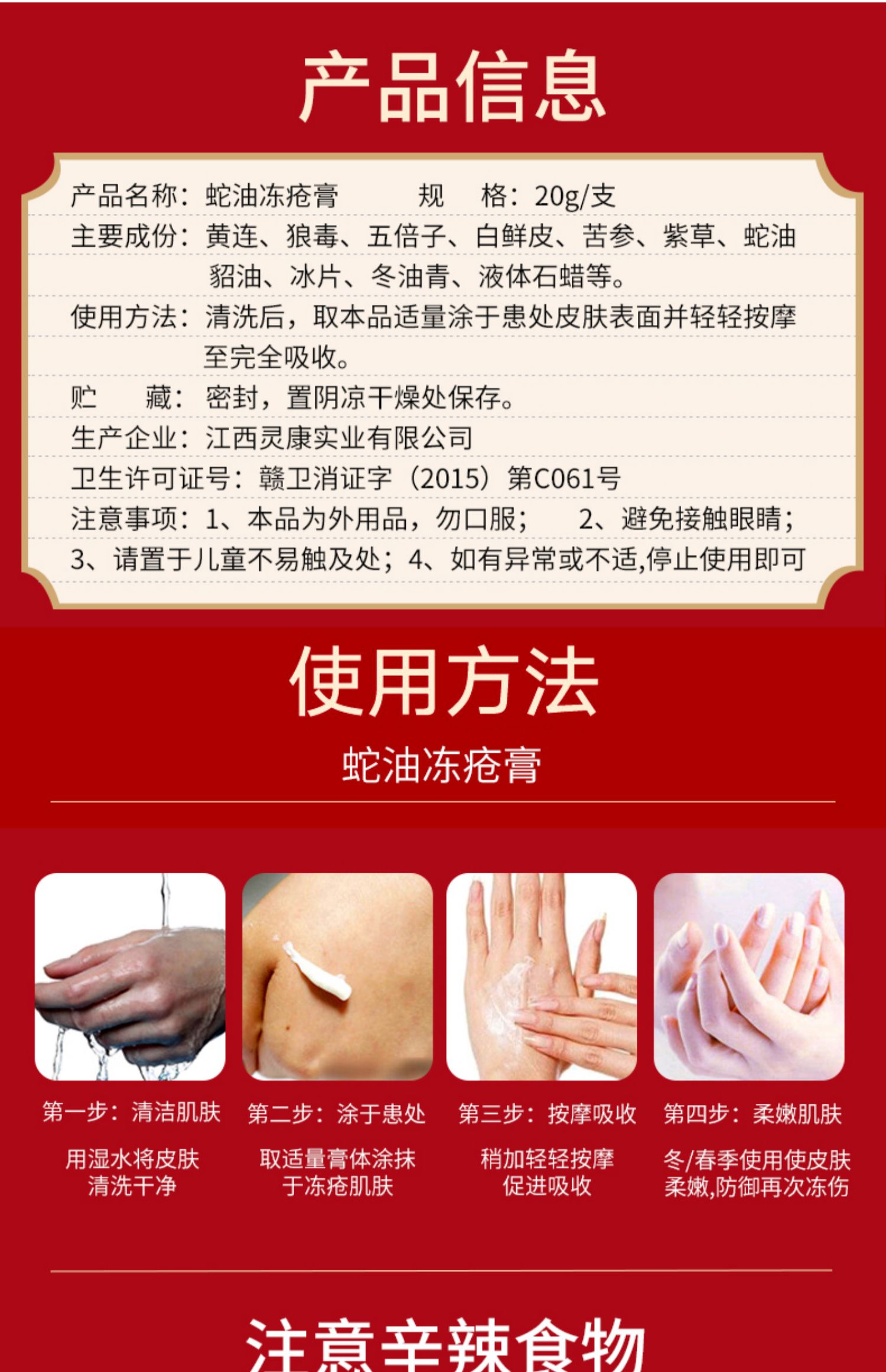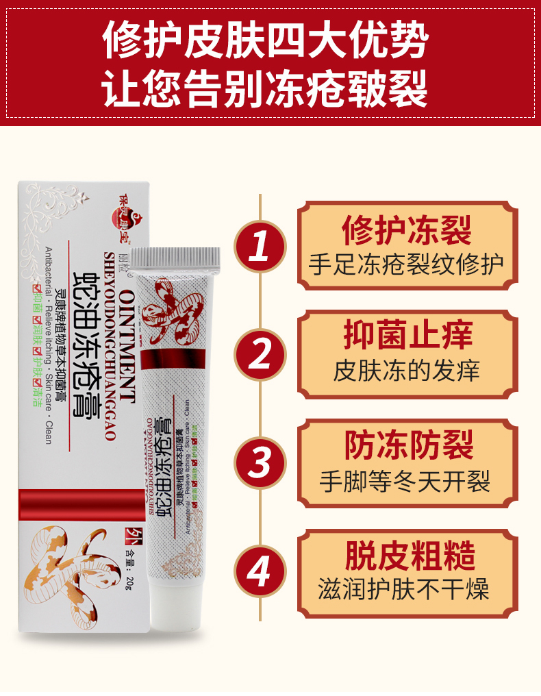 蛇油冻疮膏止痒冻伤膏防冻消肿润肤