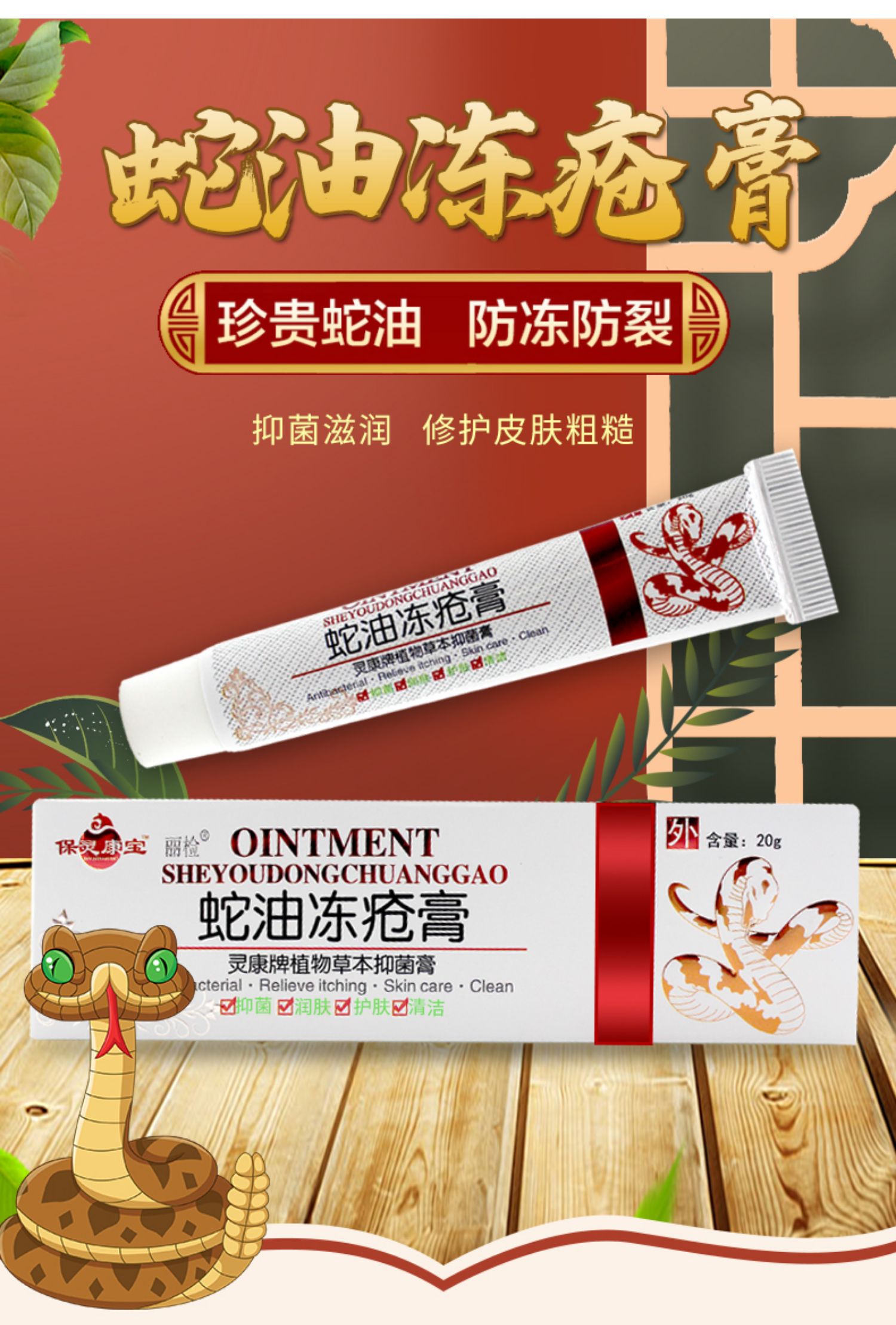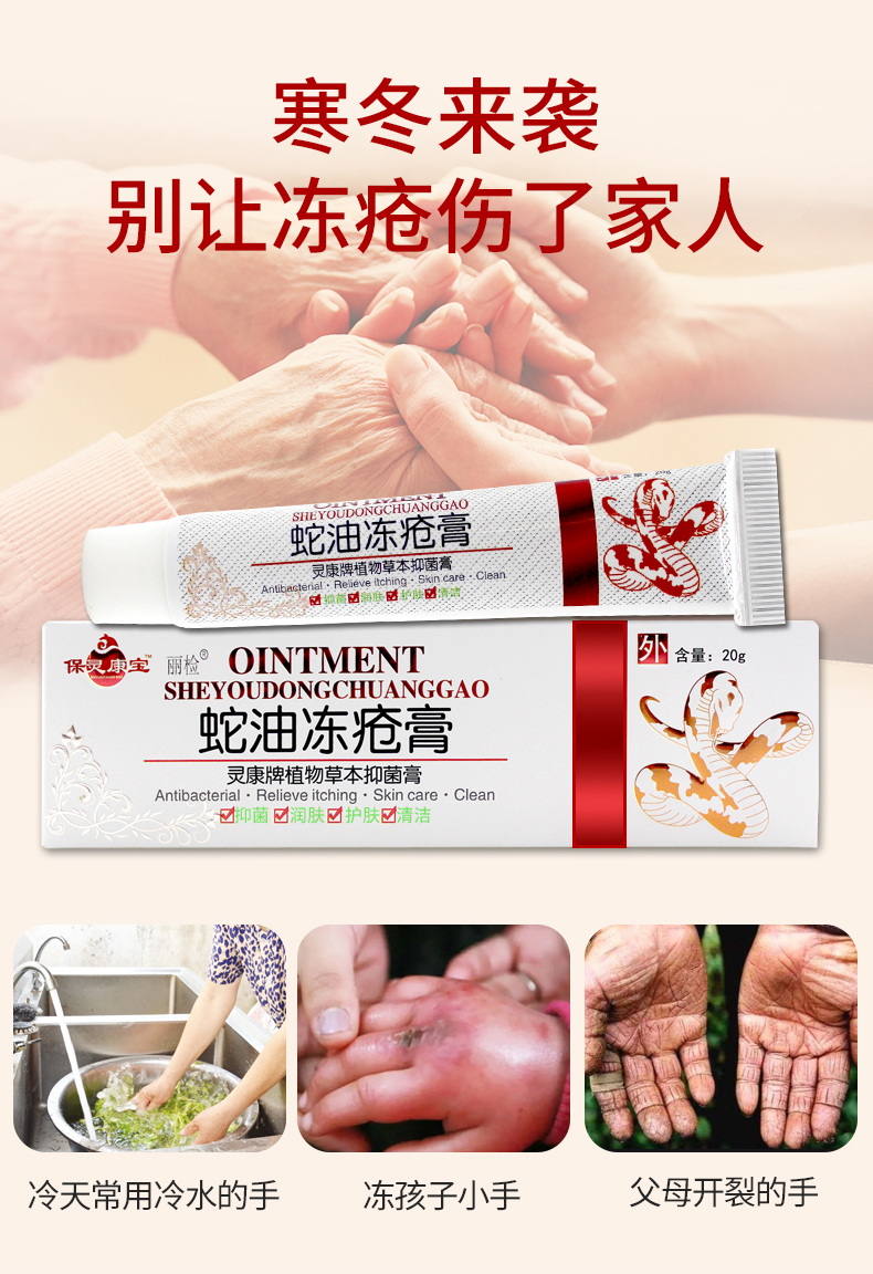 蛇油冻疮膏,珍贵蛇油,防冻防裂,抑菌滋润,修护皮肤粗糙,清爽不油腻,儿童成人都可用。【赠运费险】