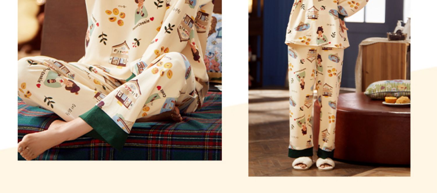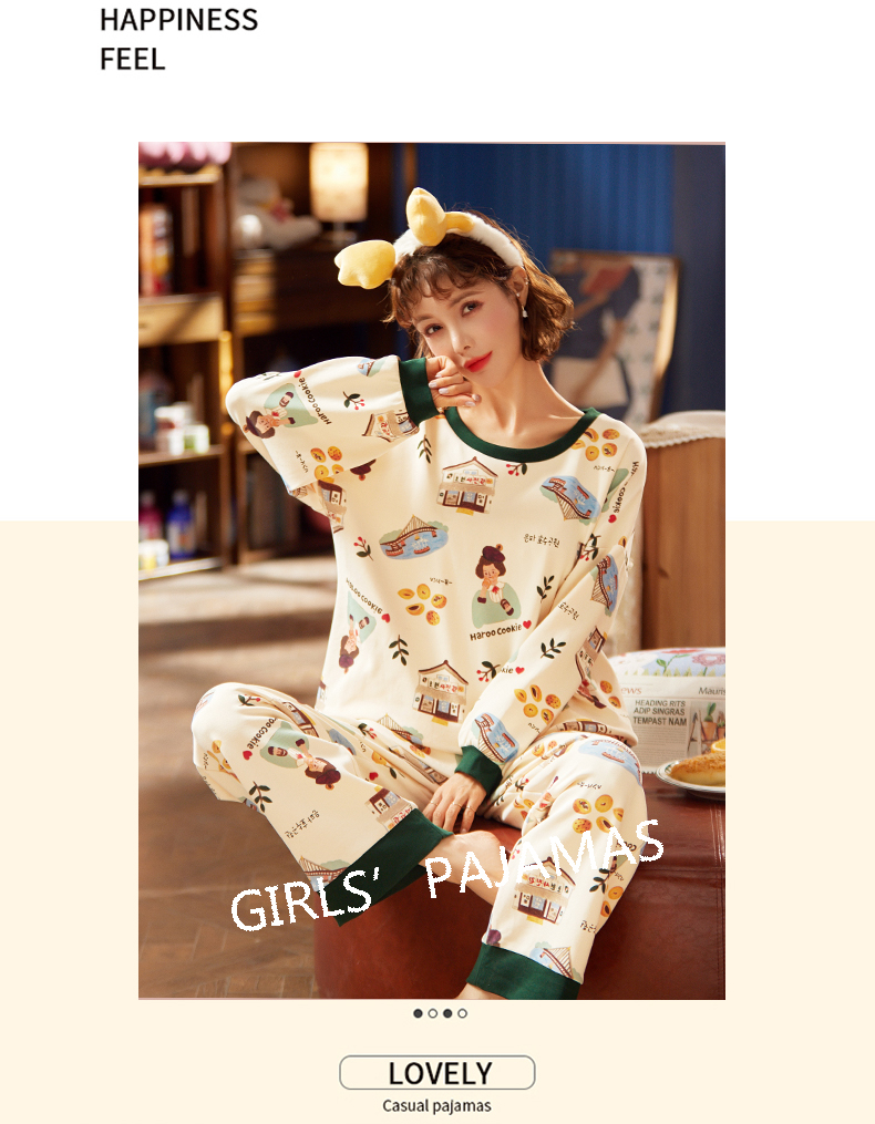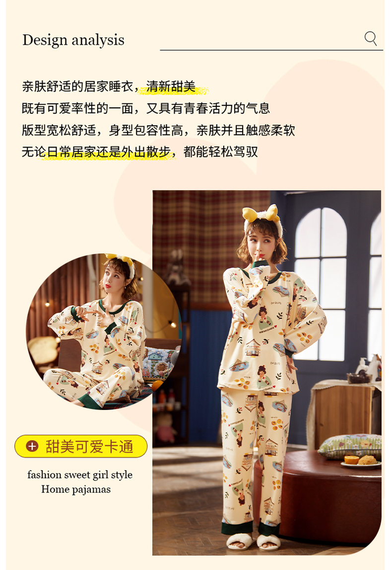 春秋全纯棉宽松长袖2件家居服套装