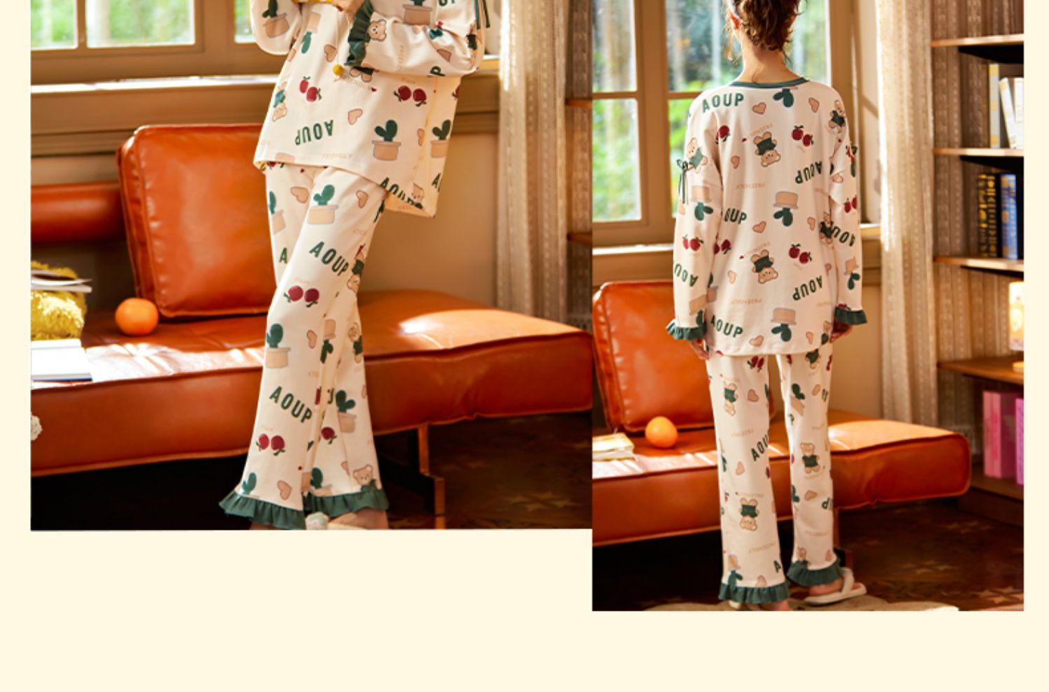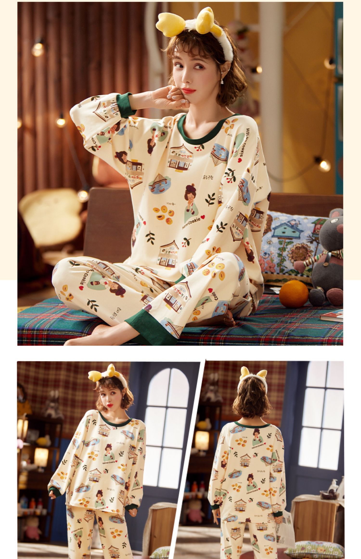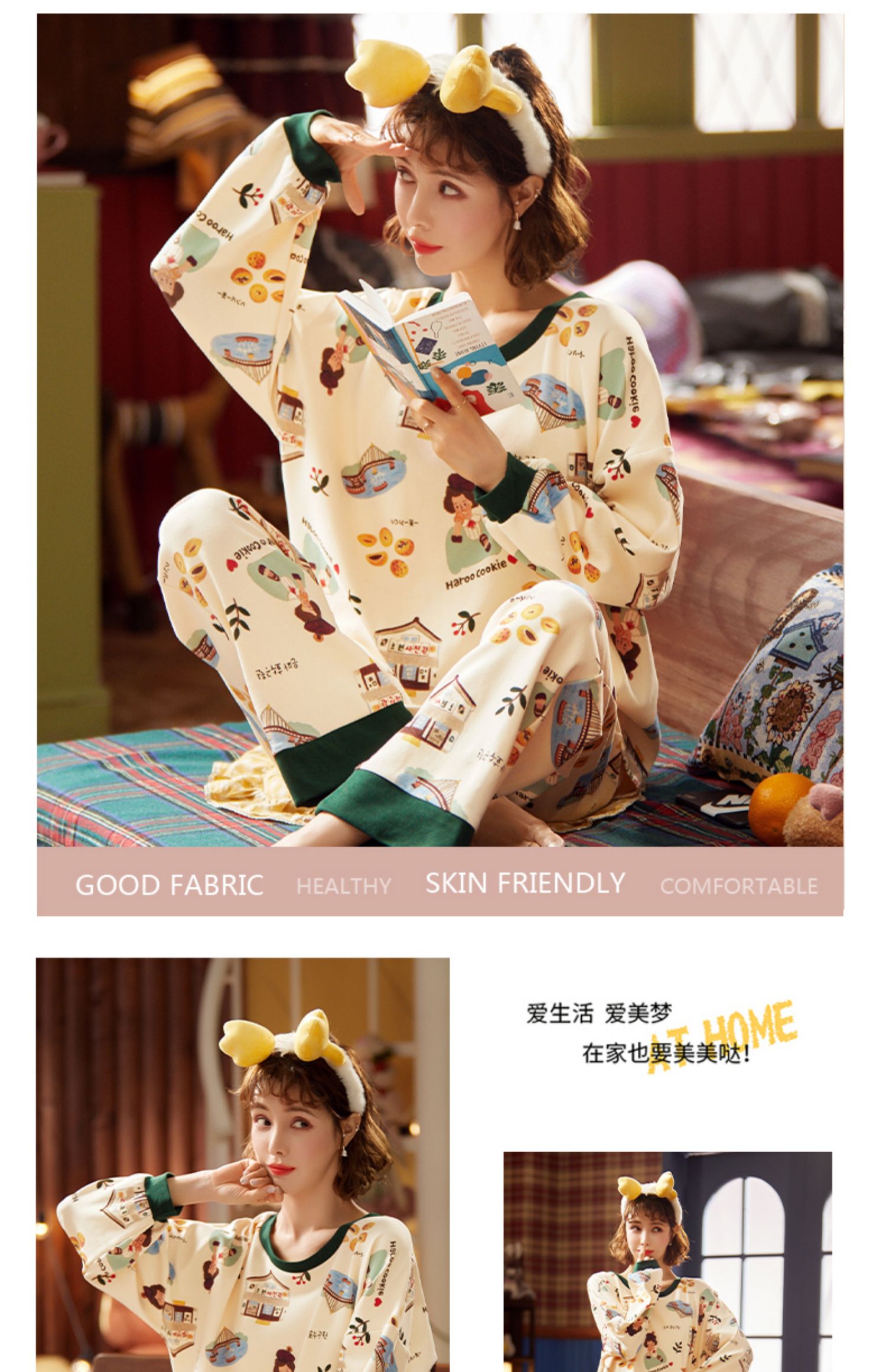 春秋全纯棉宽松长袖2件家居服套装