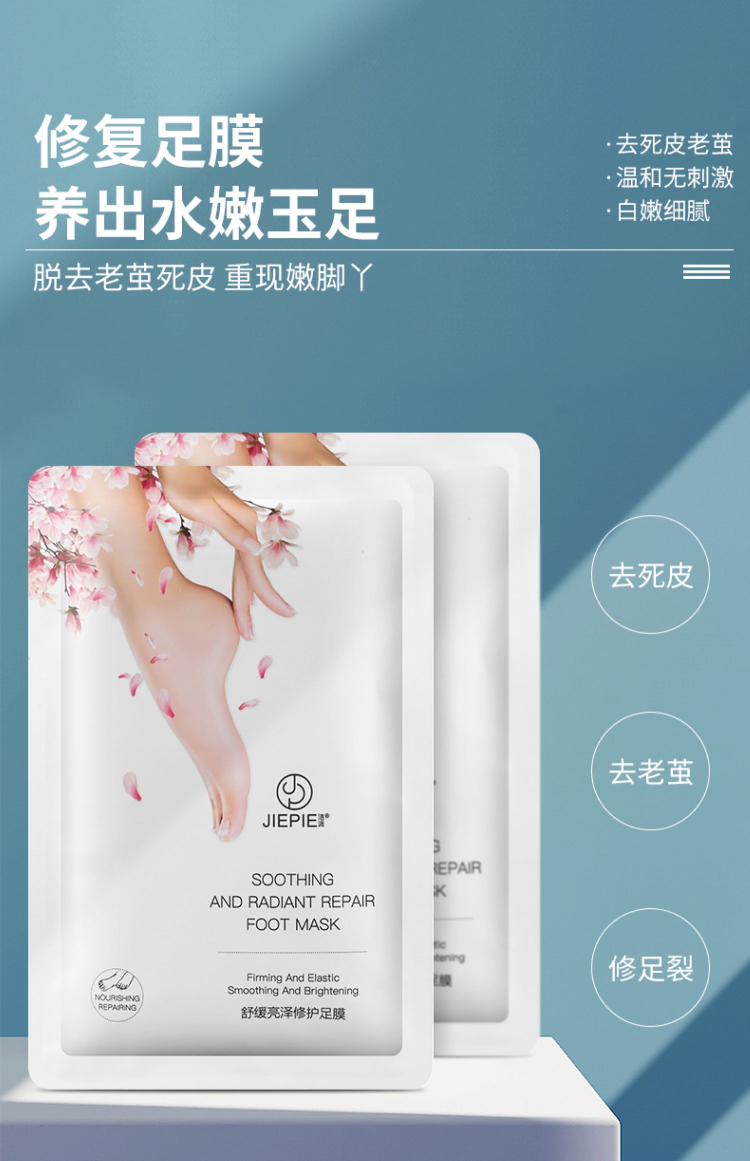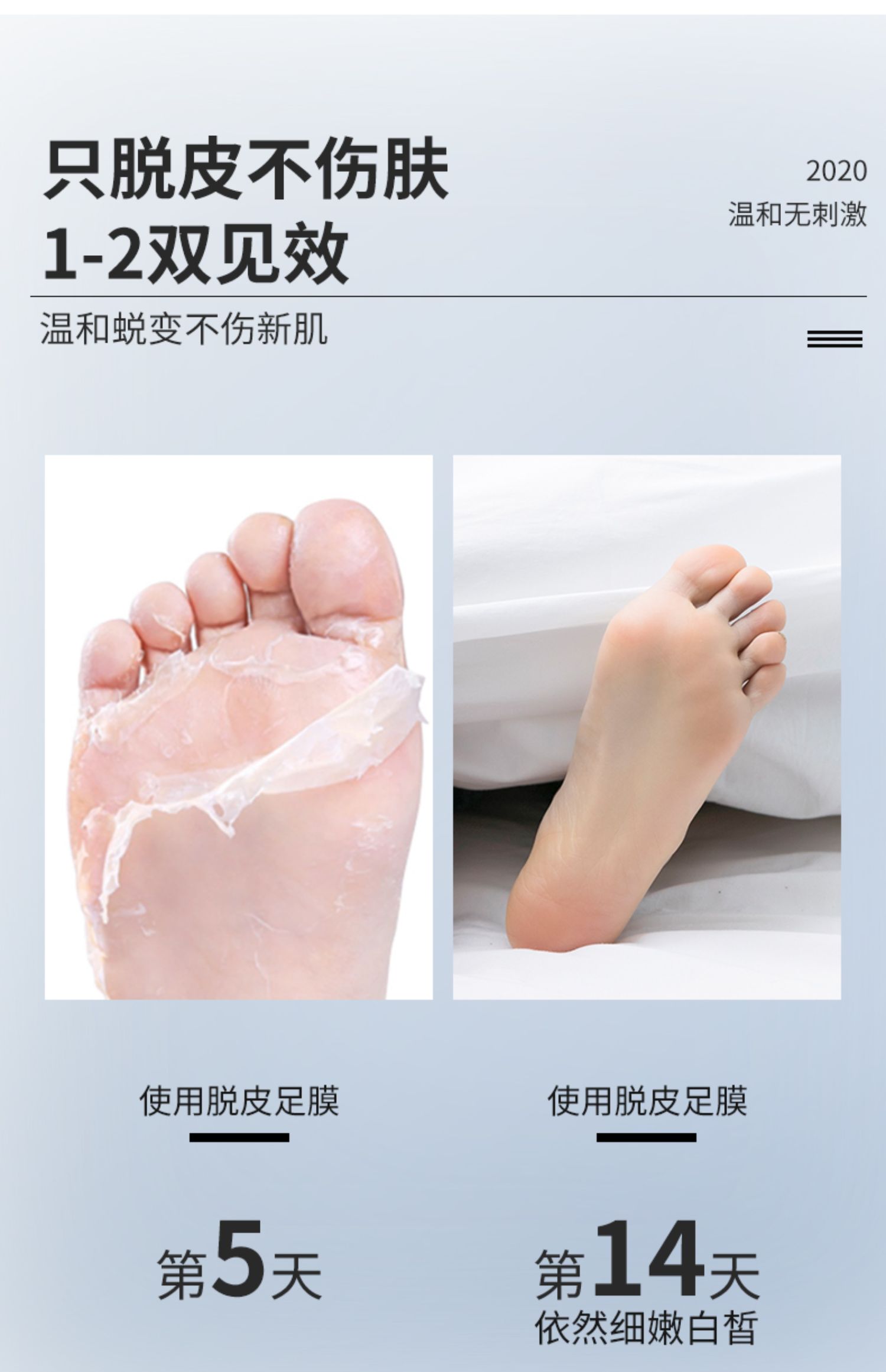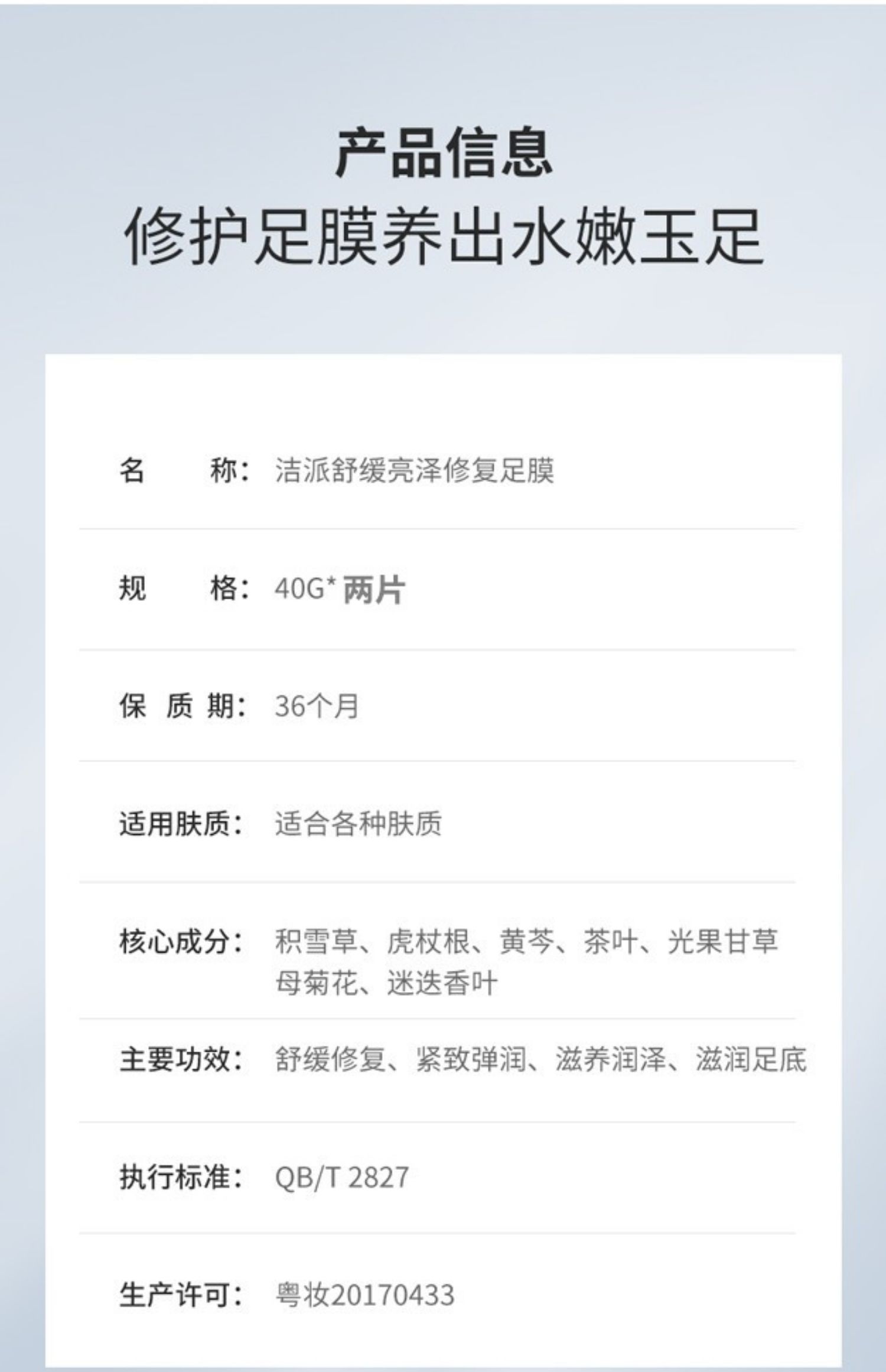 【一包2片】洁派脚膜足膜,去死皮老茧,温和无刺激,修复足膜,养出水嫩玉足,白嫩细腻,只脱皮不伤肤,七种植萃抗敏配方,天然无刺激,千万顾客共同见证!