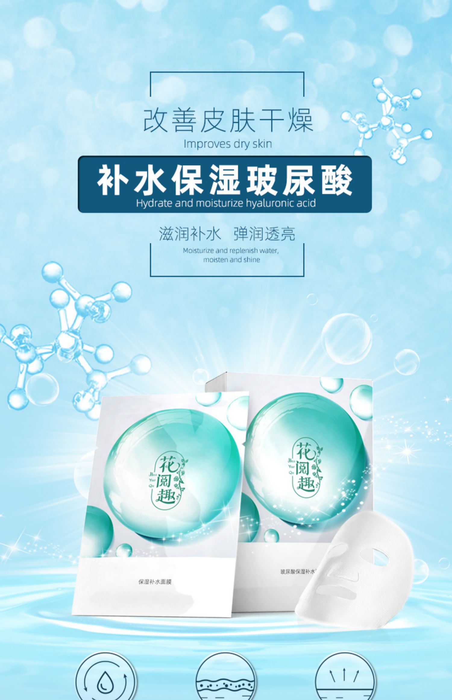 【花阅趣】玻尿酸保湿补水面膜10片装