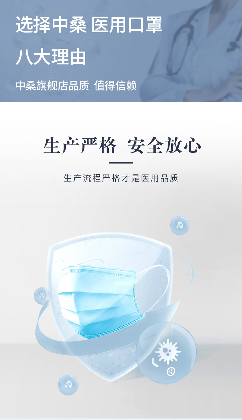 100只9.9元!【中桑-药监认证医用品质口罩】专业防护,医用口罩,加软无纺布,亲肤舒适,三层过滤防护,呼吸更放心,佩戴牢固,耐拉伸,不易脱落,安心佩戴,高弹耳挂,长时间佩戴不勒耳,精工细作贴合脸部