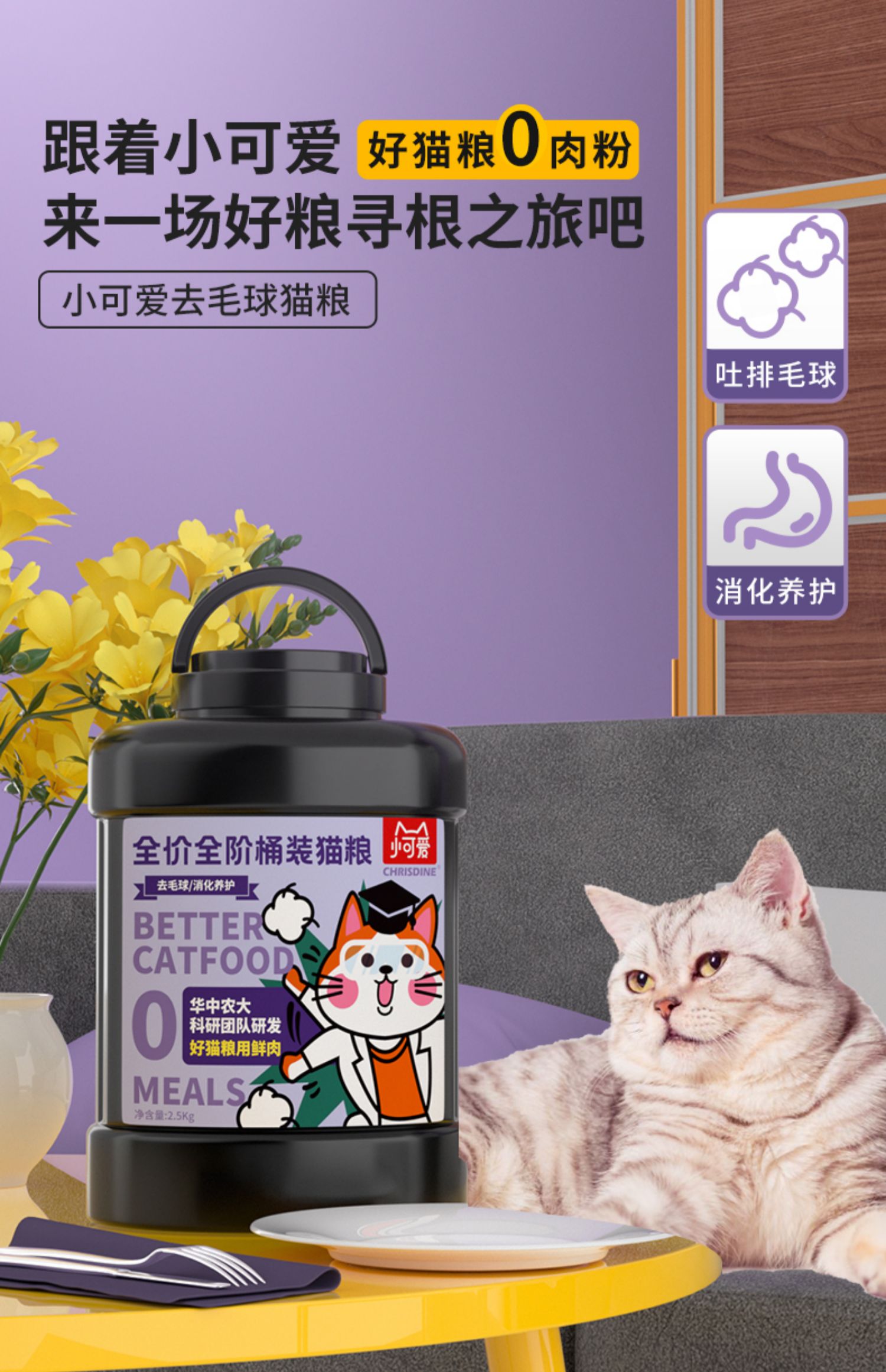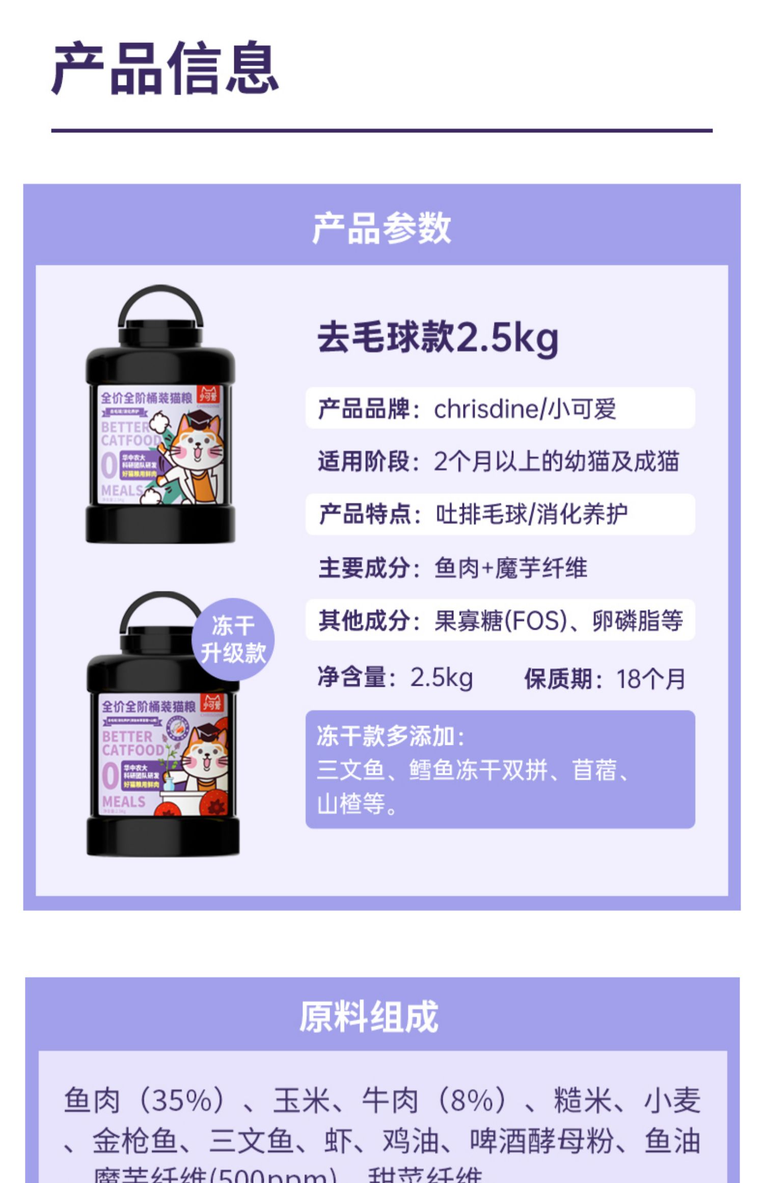 可莉丝汀草本冻干去毛球猫粮5斤桶装