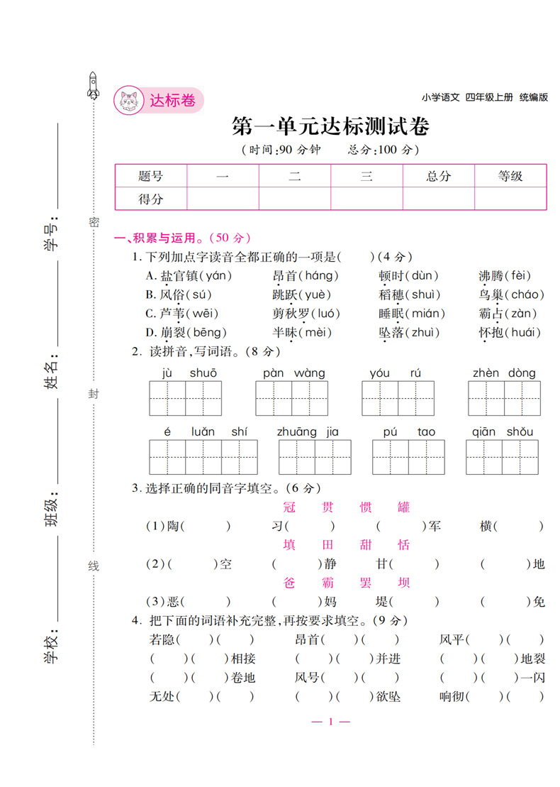 100分闯关课时作业,语文+数学+英语,掌握知识技能,培养学生思考能力,增强应用意识,快速掌握学习方法,学习更轻松!【赠运费险】
