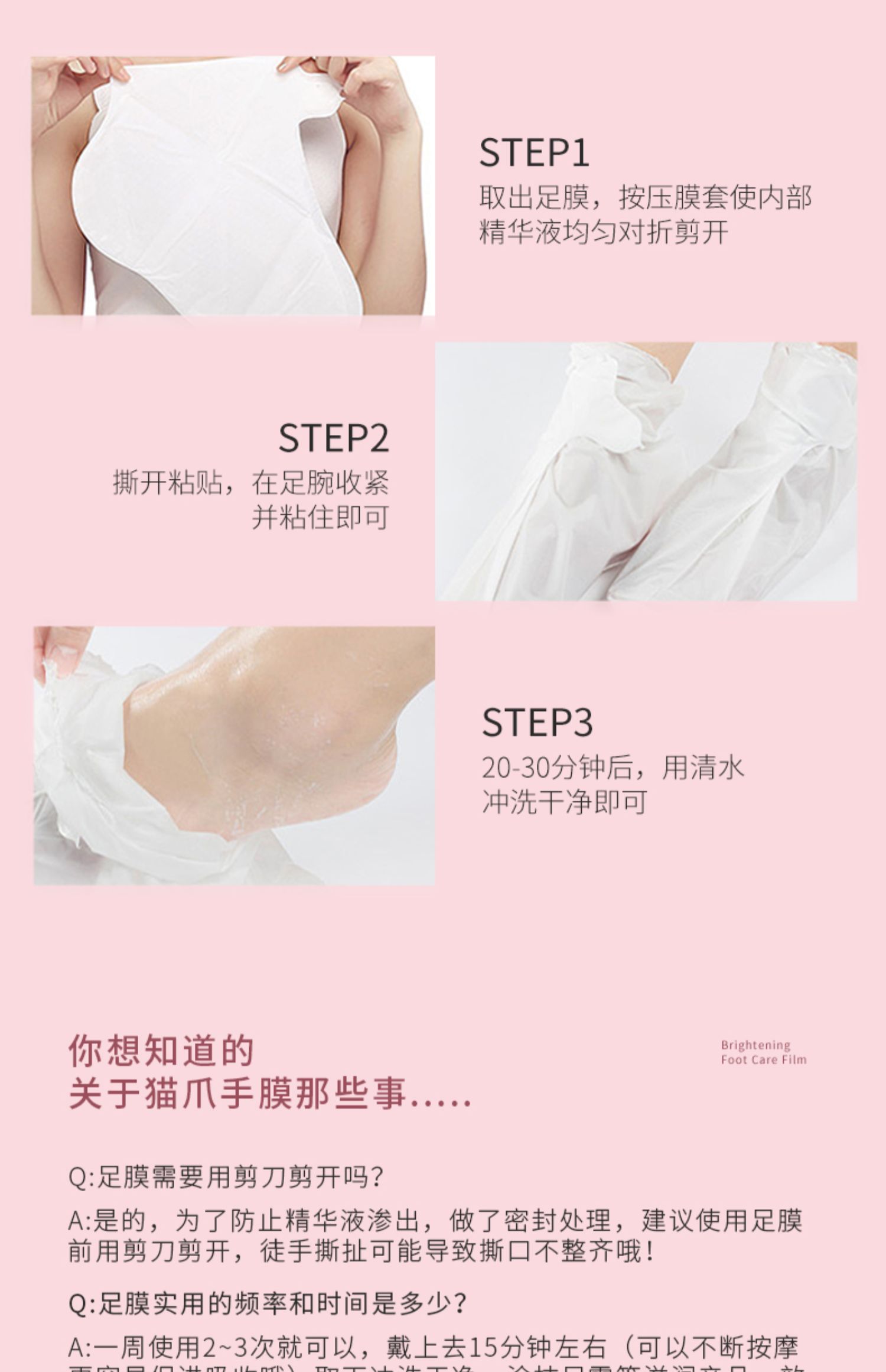 温和无刺激,修复足膜,水润保湿,养出水嫩玉足,白嫩细腻,不伤肤~