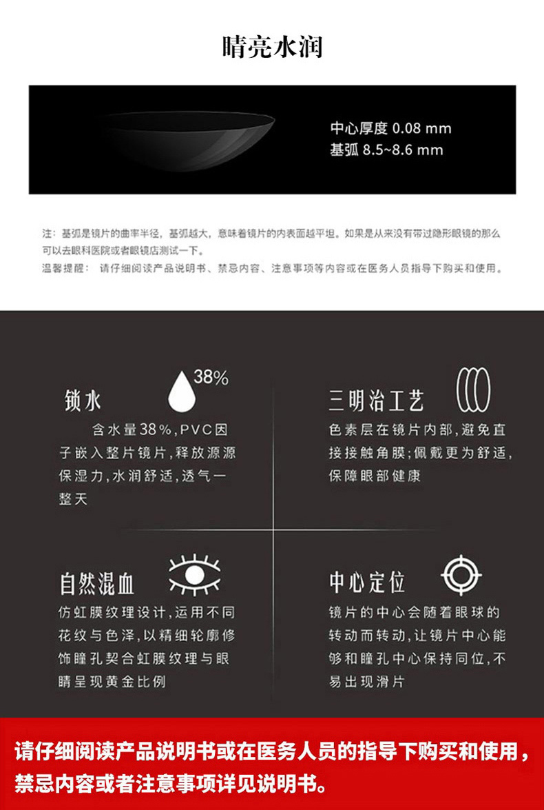 【康视达】镜片含水分率高,不刮眼,不滑片,佩戴更舒适,上眼超级自然,素颜化妆心机必备款,由内而外眼绎你的美~