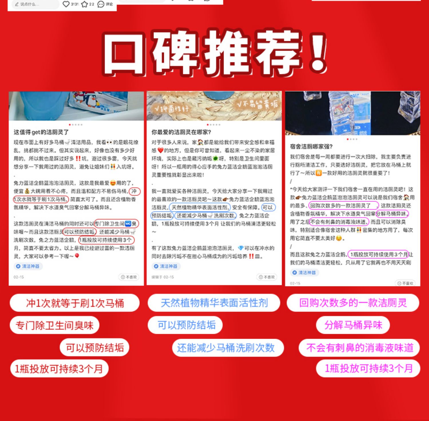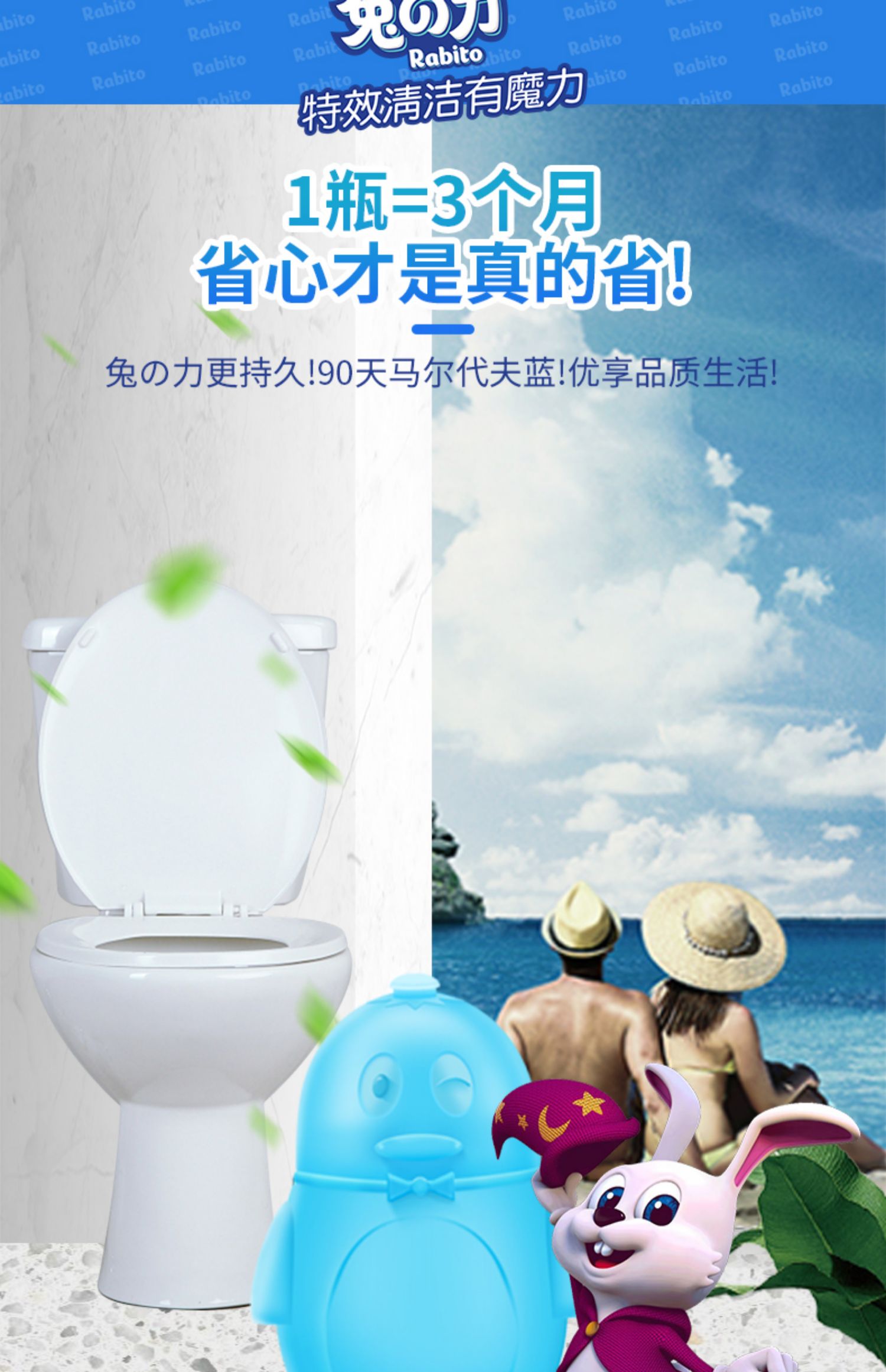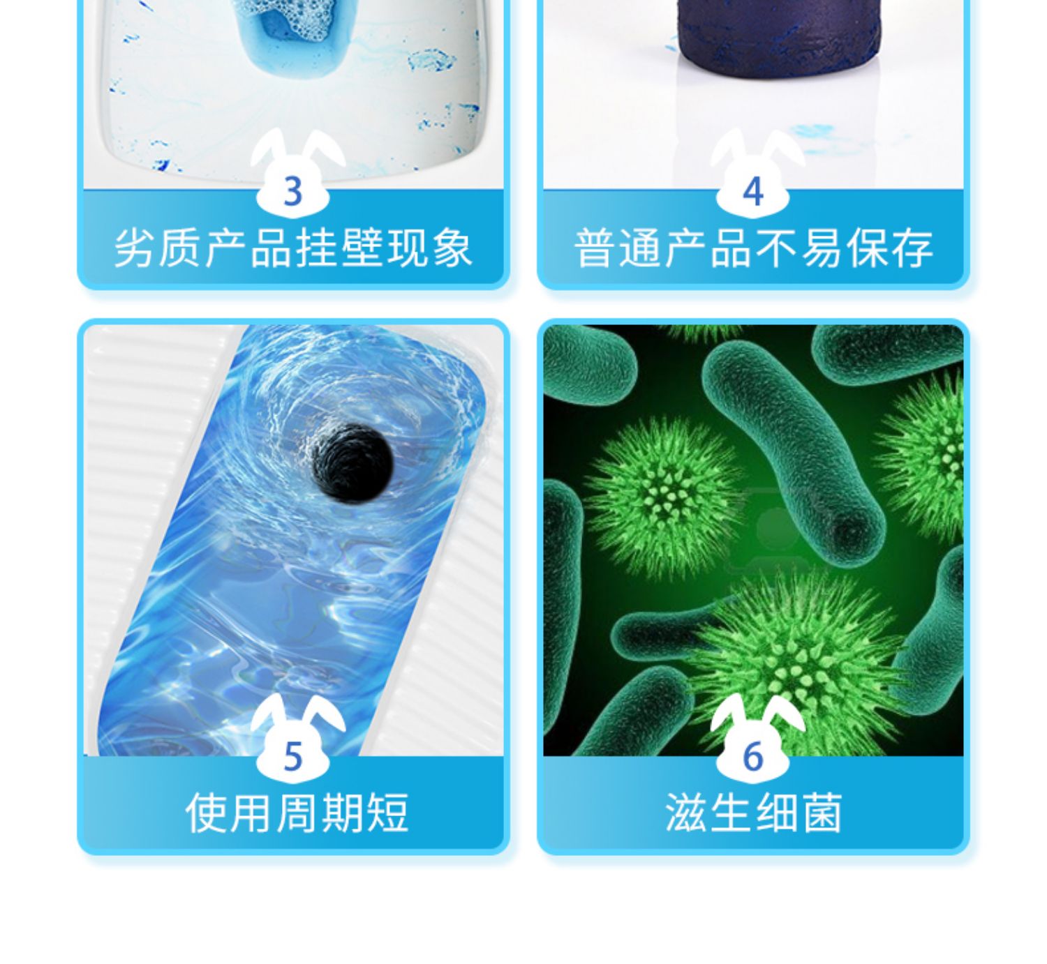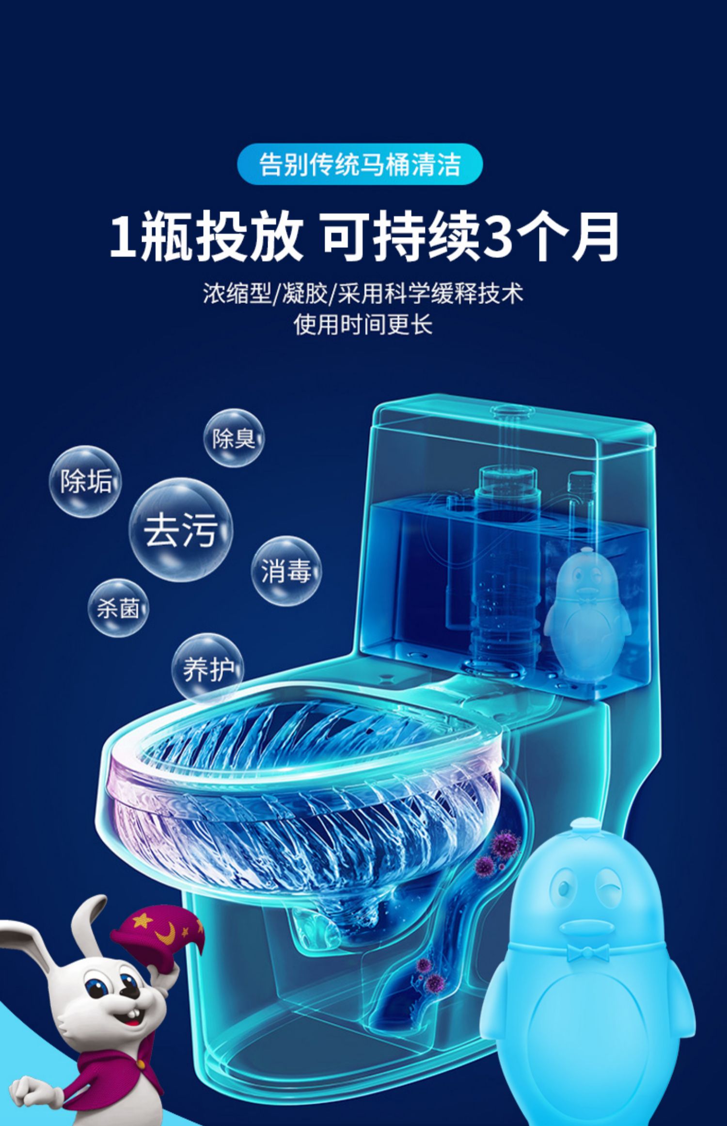 1瓶持续使用半年1瓶装洁厕熊=80粒老款蓝泡泡,清香除味,不掉色不粘手,去污除垢,釉面形成保护膜,无残留不挂壁,先进的科学浓缩技术,达到了蓝泡泡凝胶使用时间更长,更省心的效果!