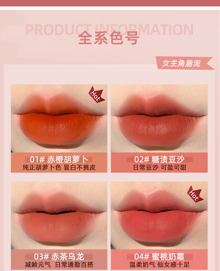 滋润保湿,着色饱满,让双唇丝滑不拔干,轻盈不厚重,涂抹于双唇之间的致命诱惑,赋予你自身女性魅力驾驭各种场合!