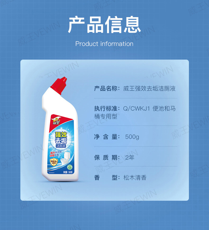 【3月4日15:00-17:00!拍1发5!500g/瓶!】威王大牌来袭,除重垢不用刷,不脏手,快速高效,除菌率高,强效洁厕,好用还划算哦!