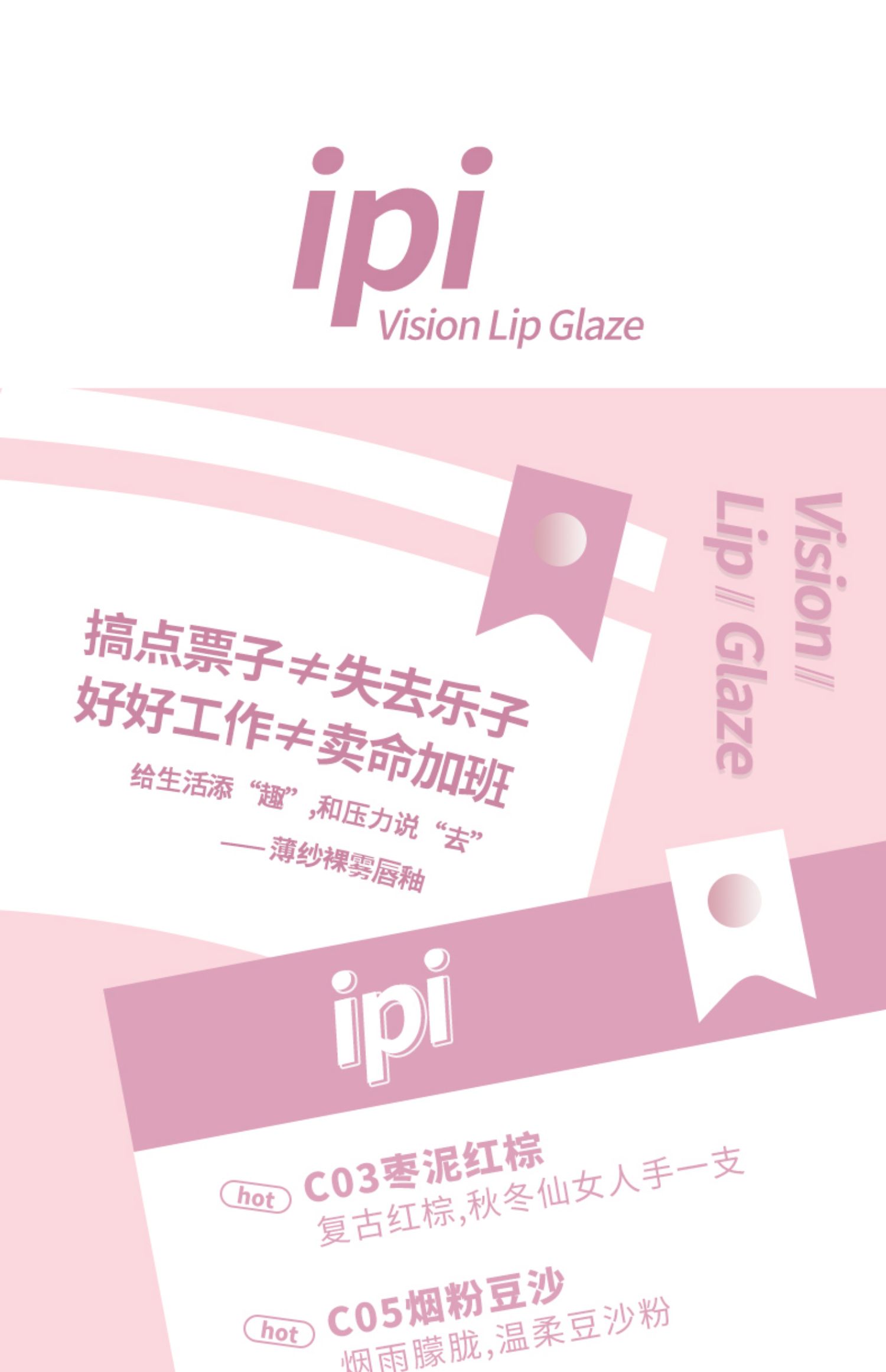 任选两件19.9元,ipi薄纱裸雾唇釉柔雾哑光拍2件,丝滑粉雾感,轻薄贴唇,薄涂满满的少女心,厚涂秒变气场女王,不挑肤色,超级显白!