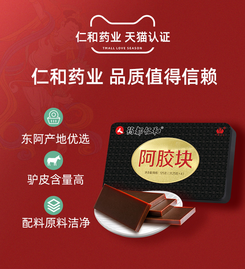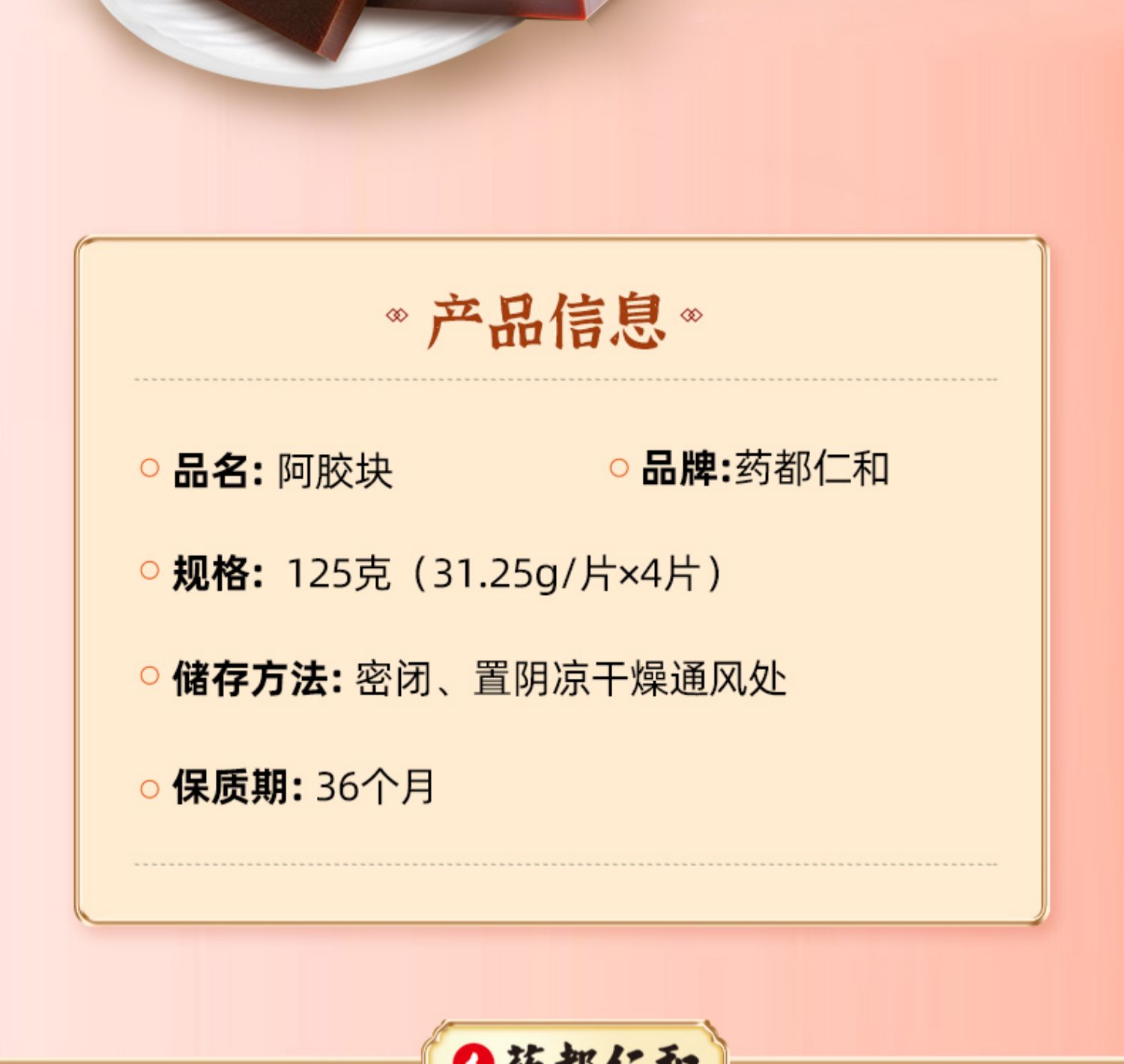 【千年生工】补气血阿胶原块盒装125g,精致铁盒包装,东阿正品,色如莹漆,表面平整,胶香清纯。磨粉冲泡,制作阿胶糕,炖汤都可!每天吃一点,补血补气助睡眠抗衰老,养出好气色!