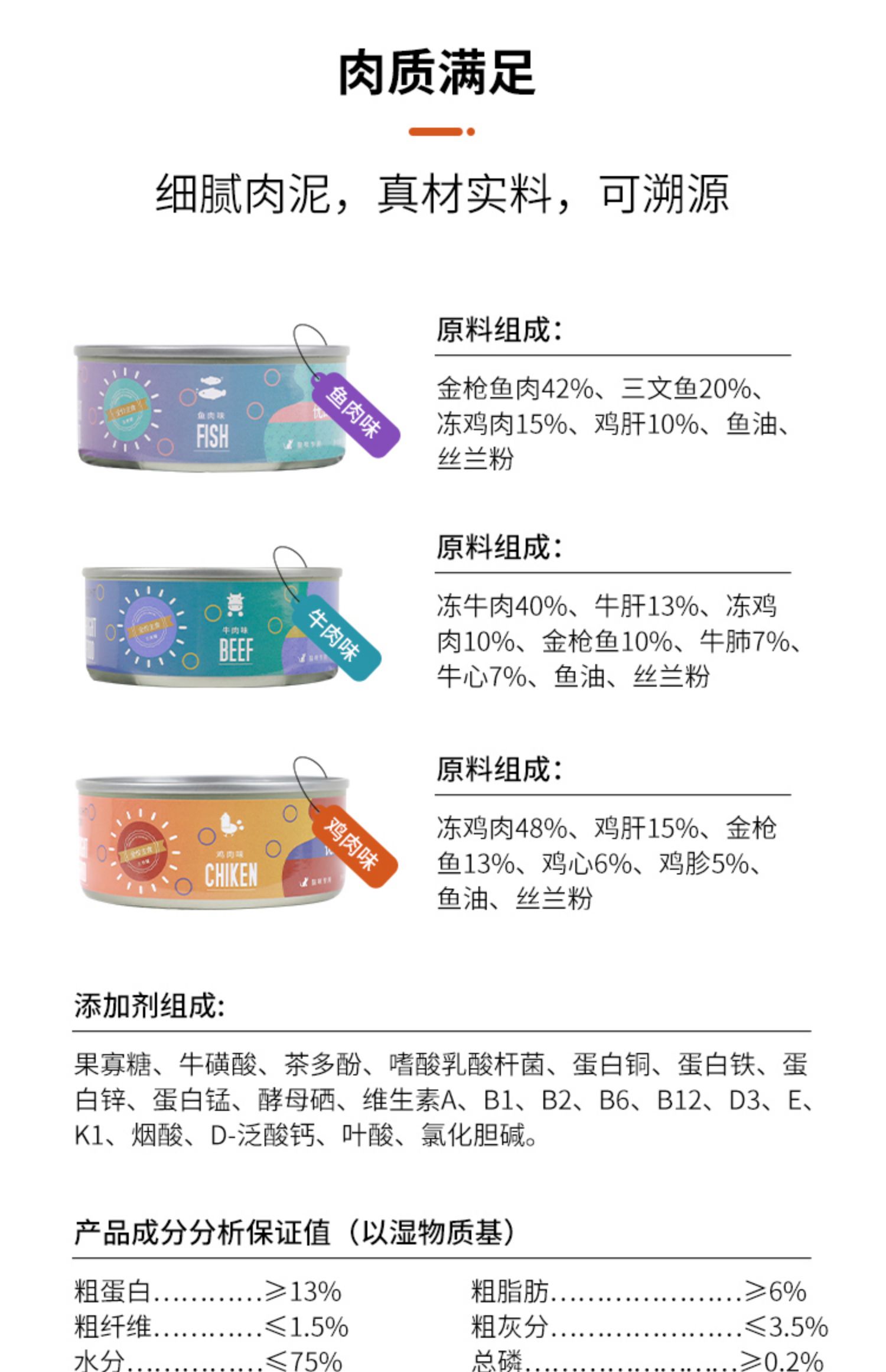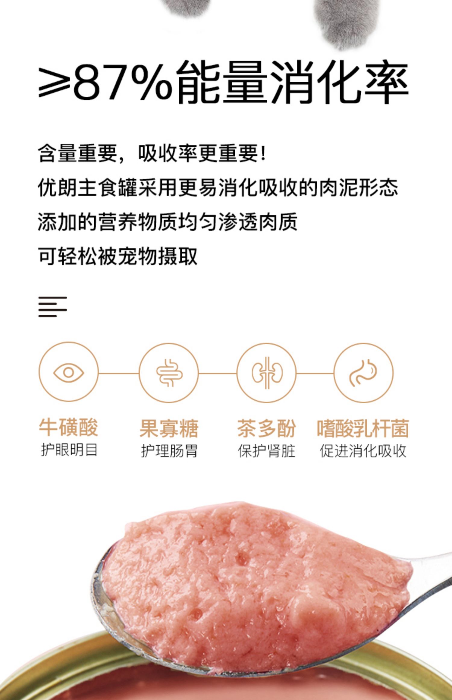 0谷物0胶添加,高含肉量,满足猫咪营养需求,绵绵慕斯状,美味好吸收