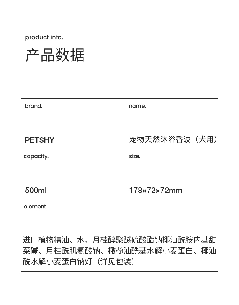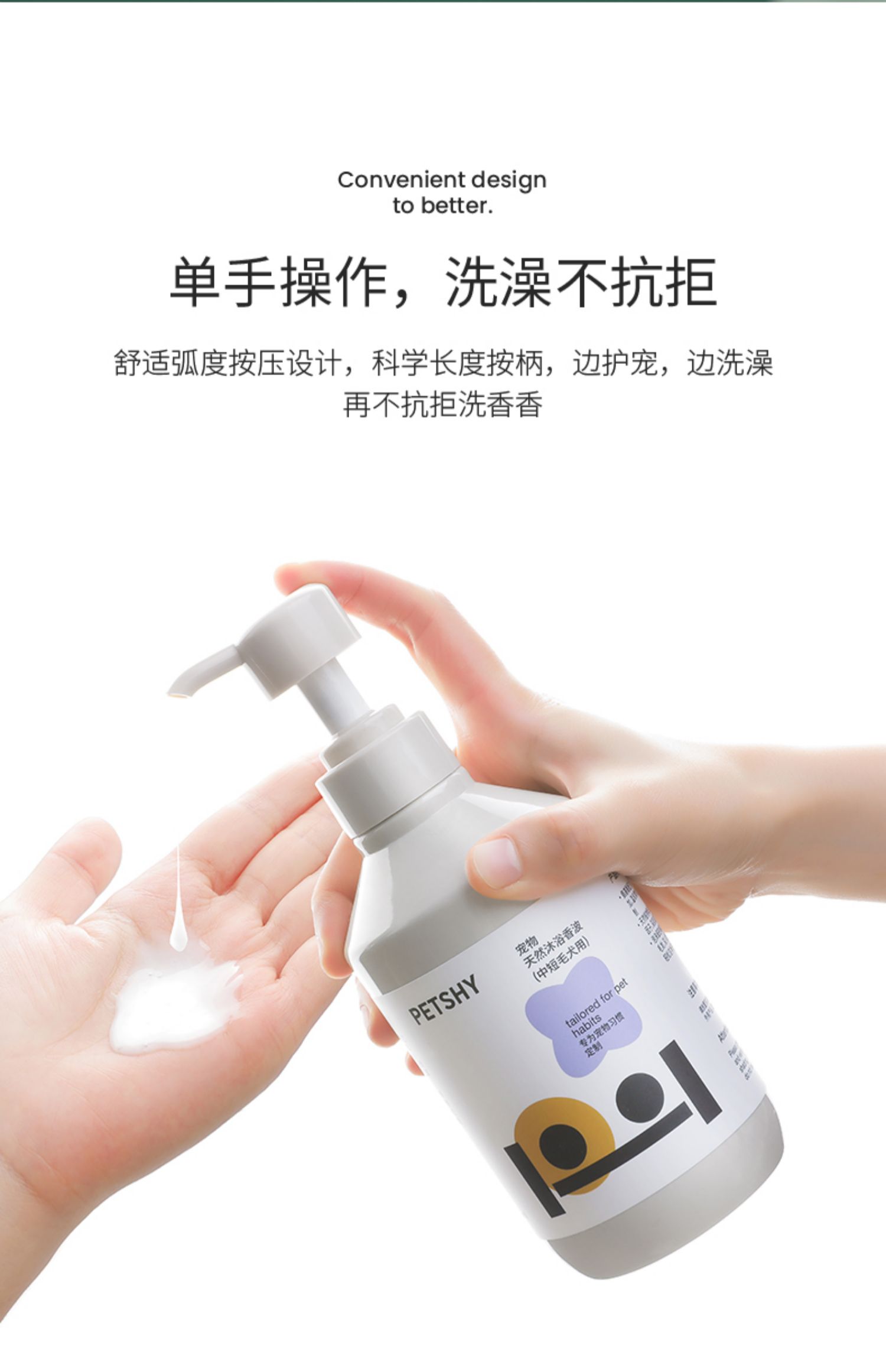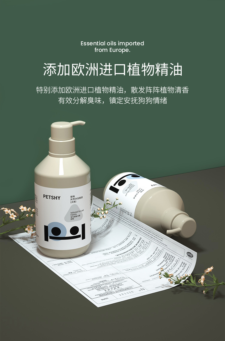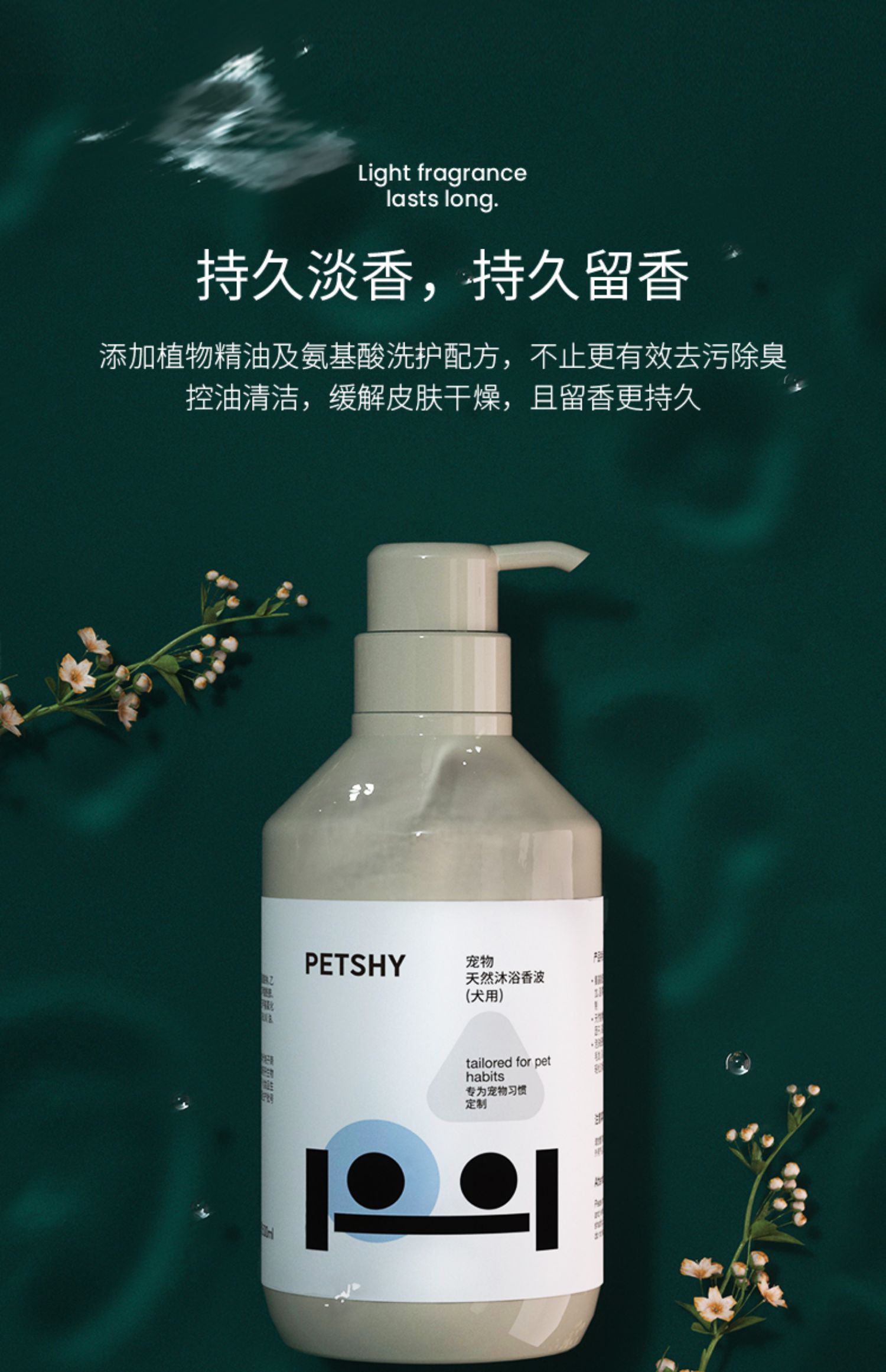 Petshy旗舰店,氨基酸配方,添加欧洲进口植物精油,有效分解臭味,易冲洗无残留,镇定安抚狗狗情绪,滋润毛发,无泪温和,持久留香。