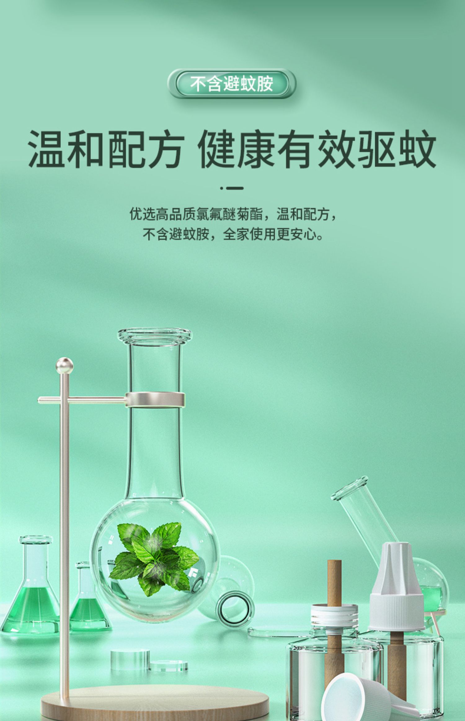 温和无味,不含避蚊胺,整夜长效驱蚊!有它,夜夜好眠,没有蚊虫叮包!