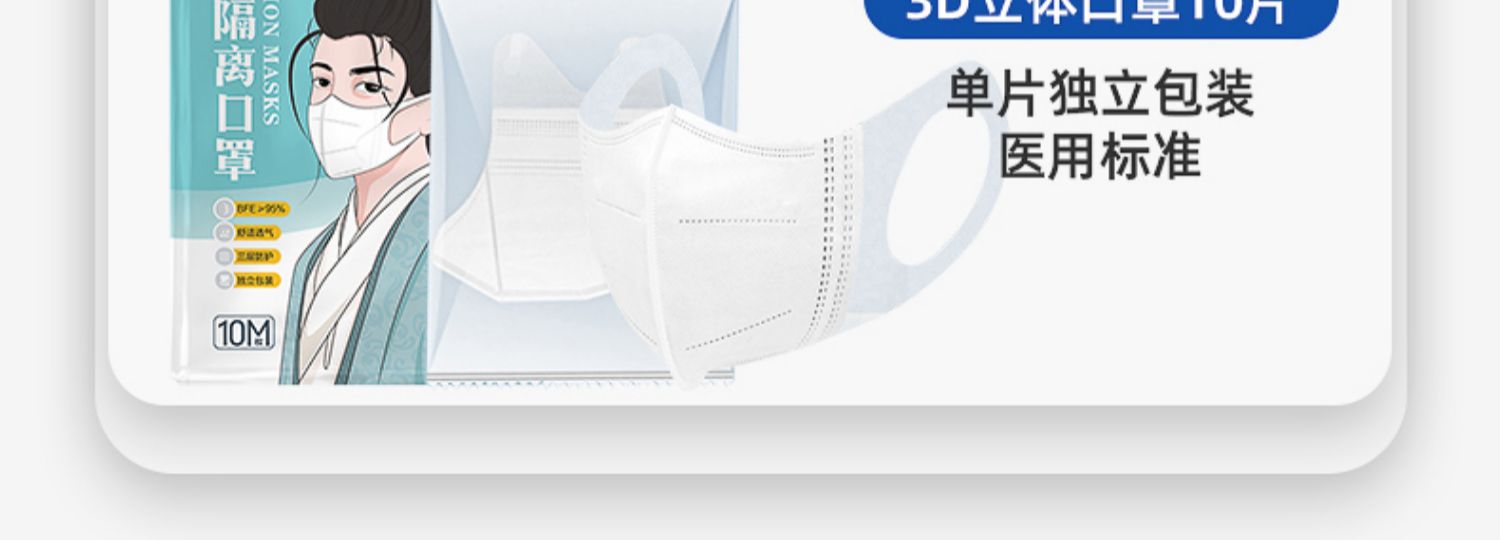 成人儿童可选,细菌过滤率大于95%,药监局认证备案,三层防护,医用熔喷布,亲肤透气,独立包装【赠运费险】