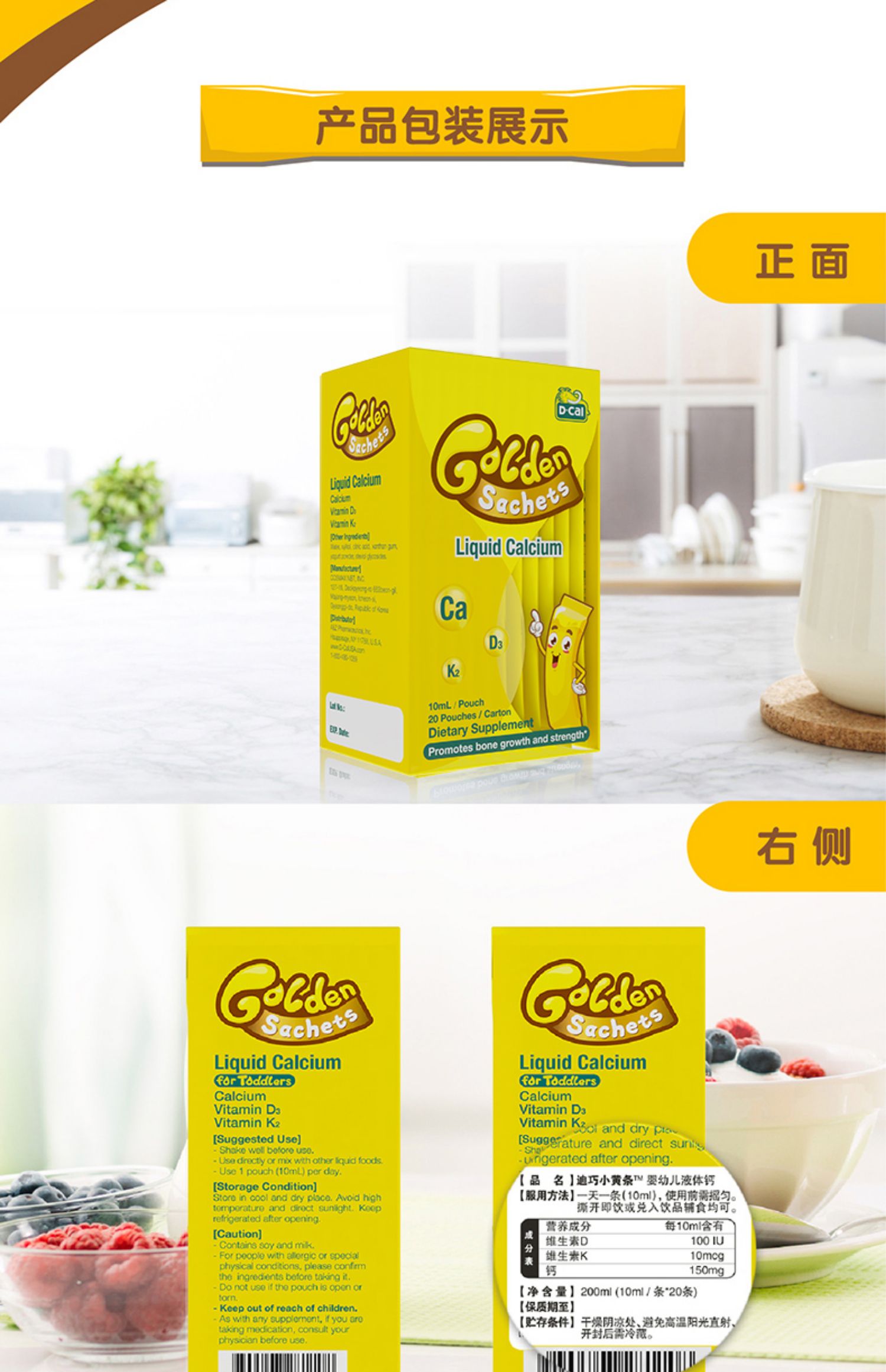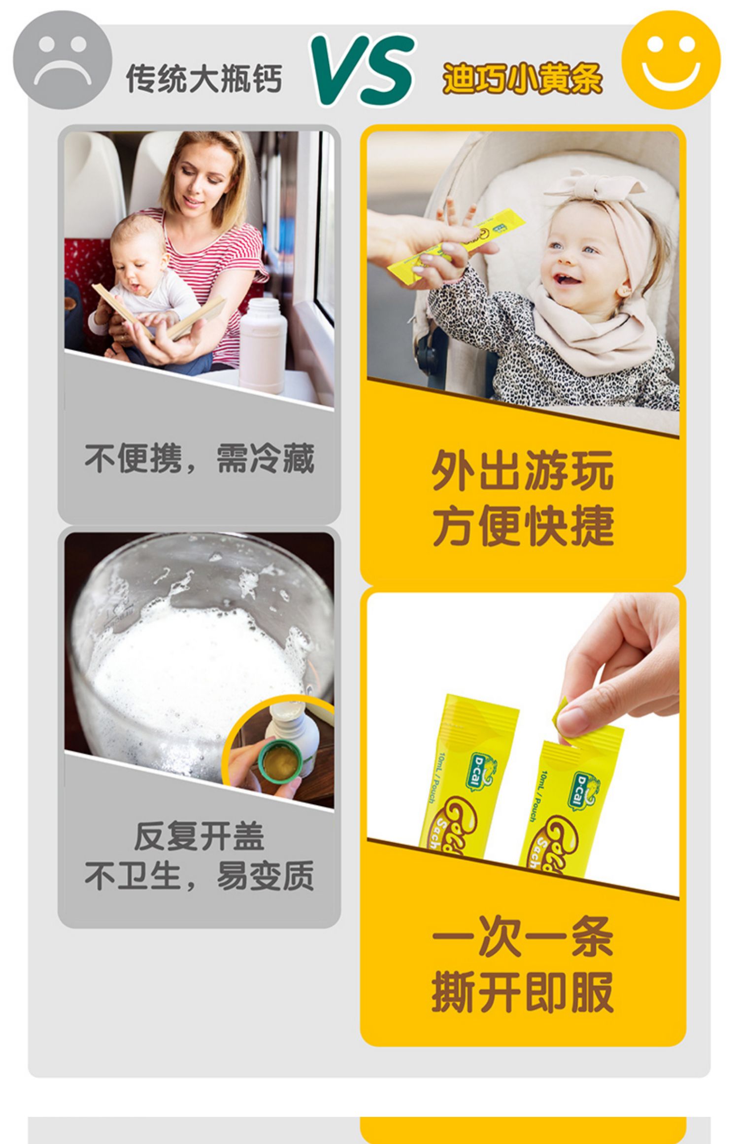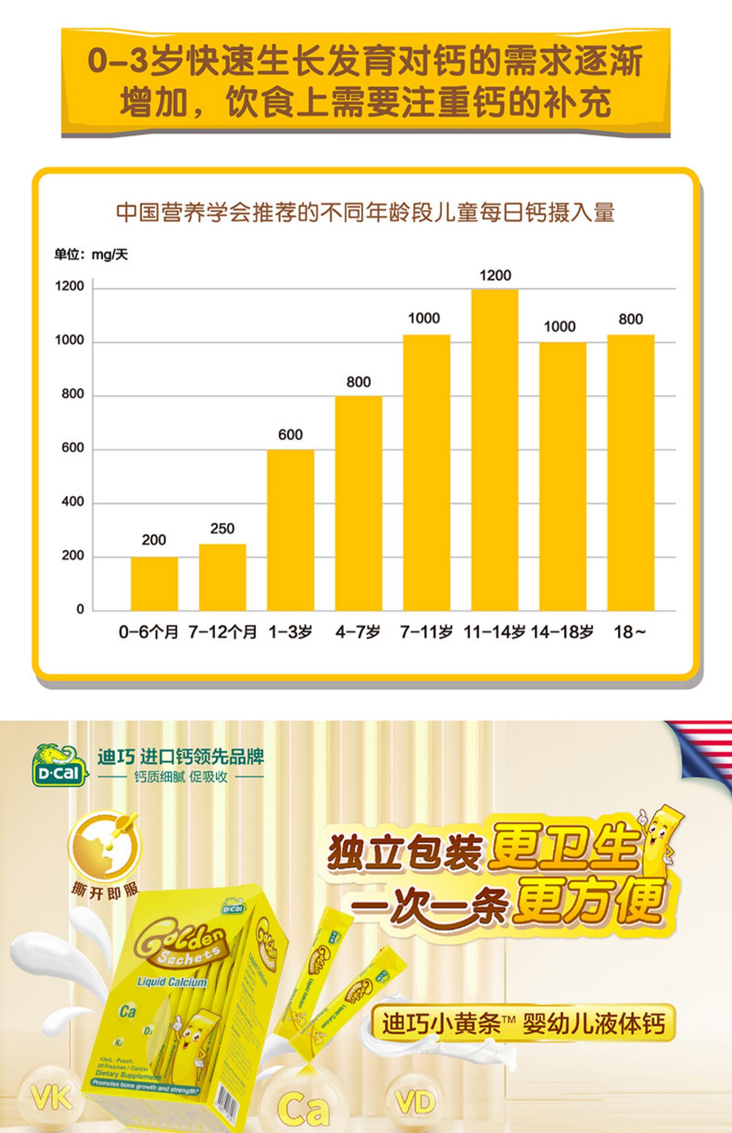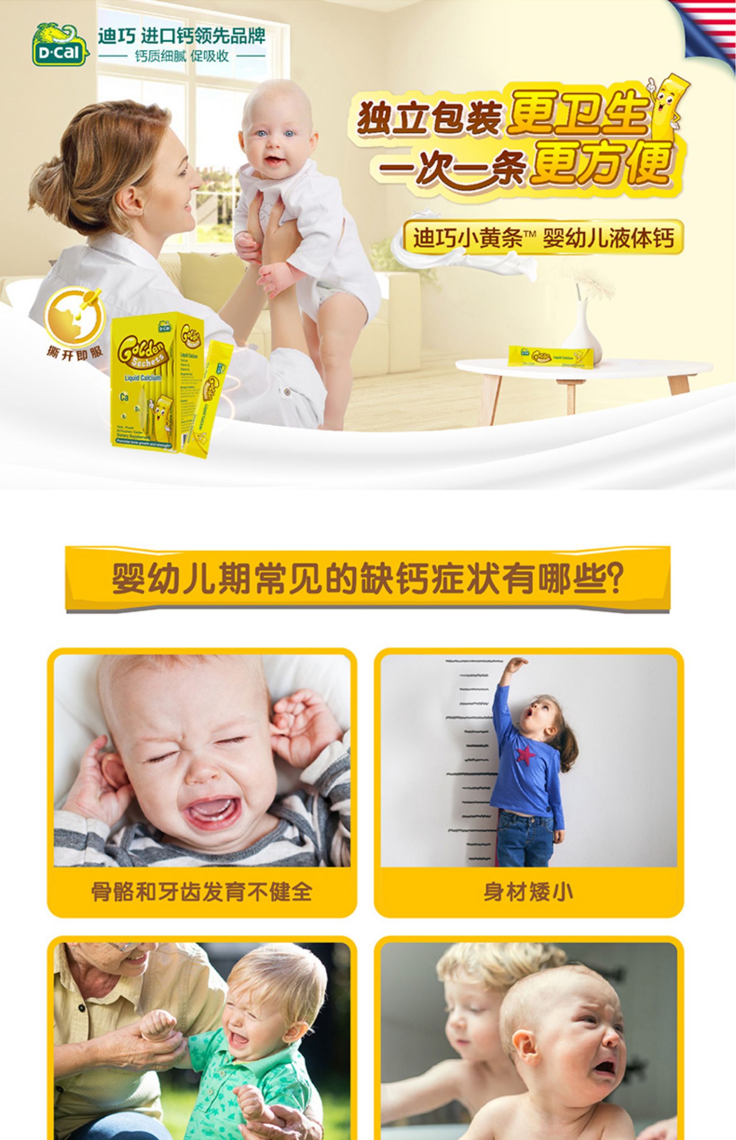 【赠颗粒钙】【叠加满减和淘金币,低至100元~】dcal迪巧小黄条婴幼儿液体钙:美国原装进口,一次一条,卫生方便,宝宝爱吃,吸收更好~】