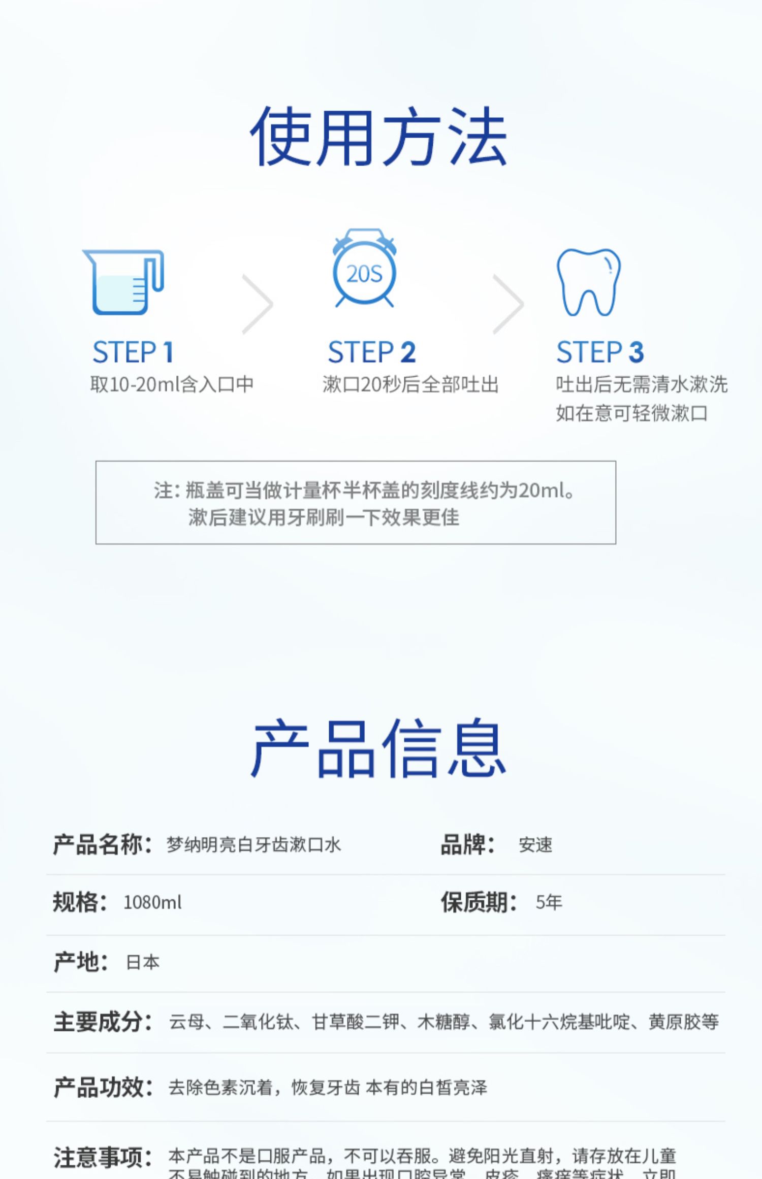 日本安速梦纳明美白星空漱口水1080ml去黄杀菌去牙结石除口臭便携,超赞哦
